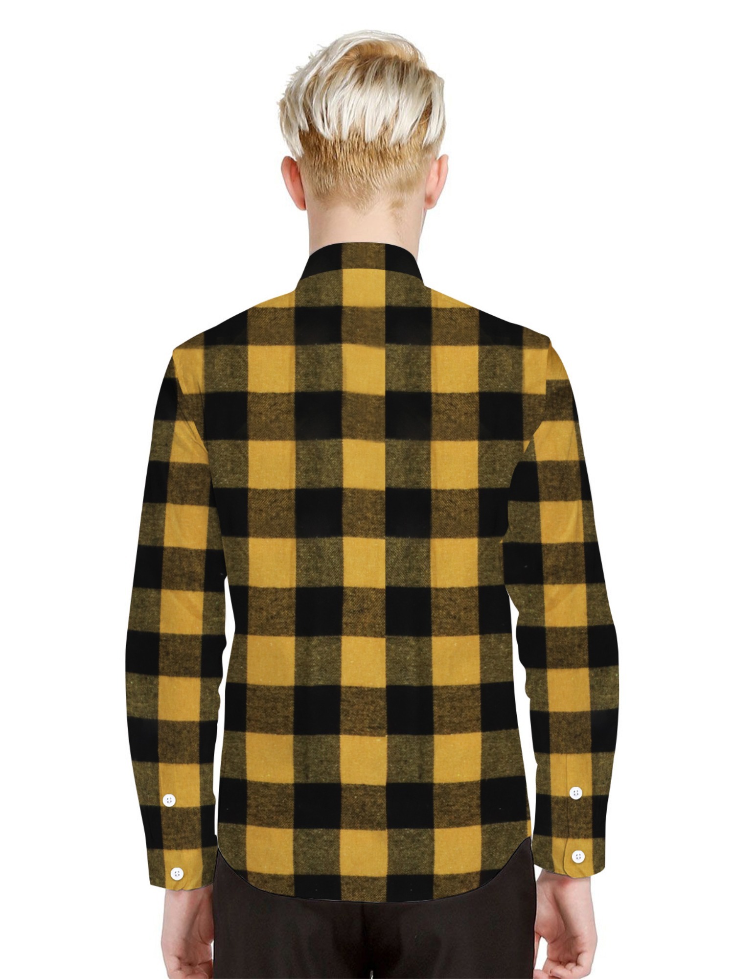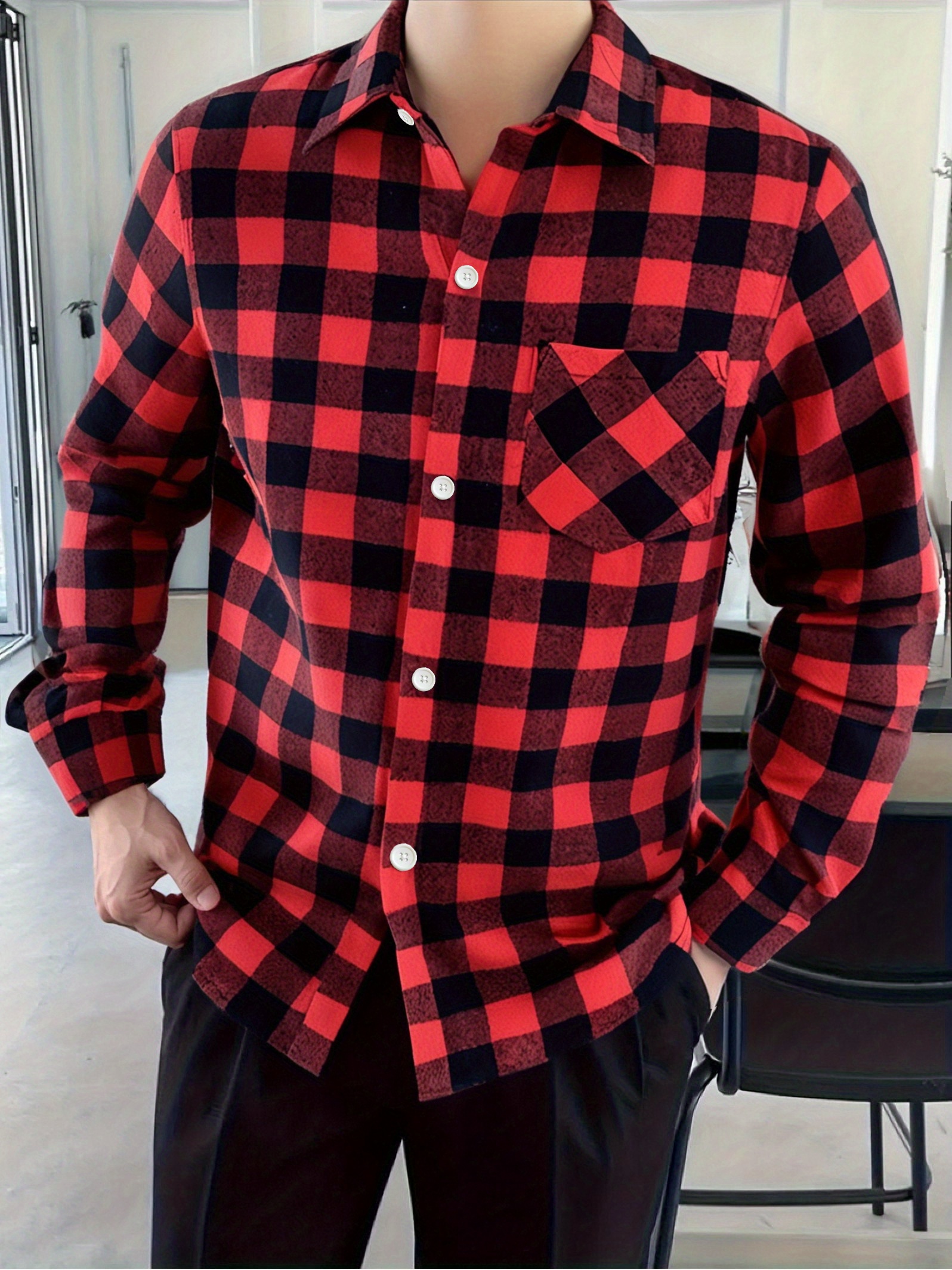 Trendy Checkered Vintage Plaid Colorblocking Men'S Casual Shirt with Chest Pocket, Grid Pattern Top for Spring and Autumn Wear, Comfortable Stylish Design