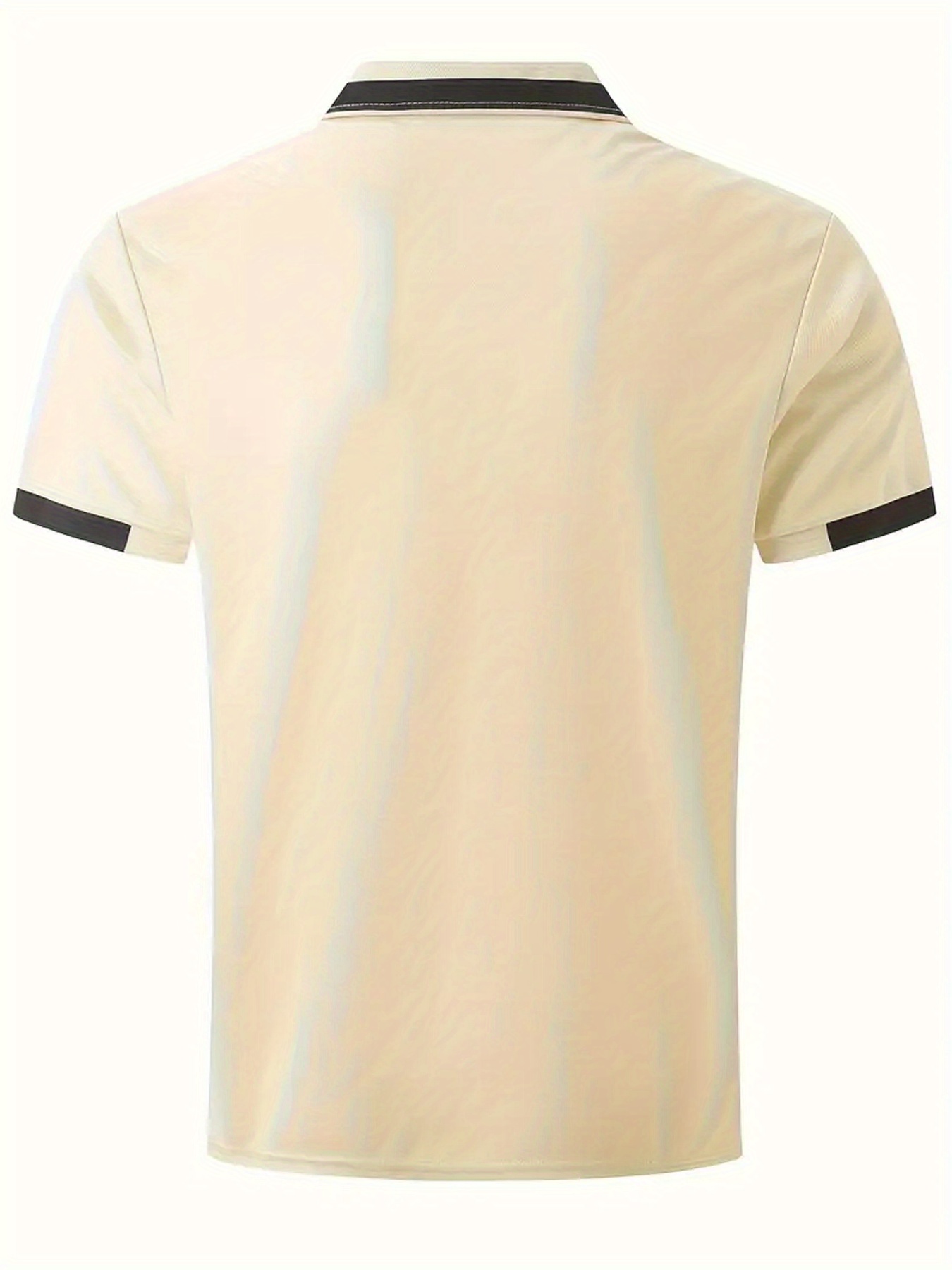 Men'S Casual Shirt - Breathable, Stretchy Polyester with Contrasting Neckline And Cuffs, Short Sleeve Golf Top for Work, Dating And Casual Wear