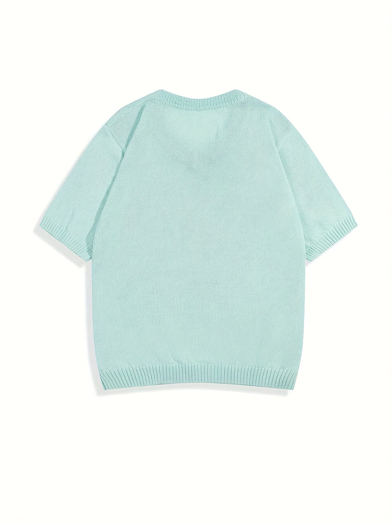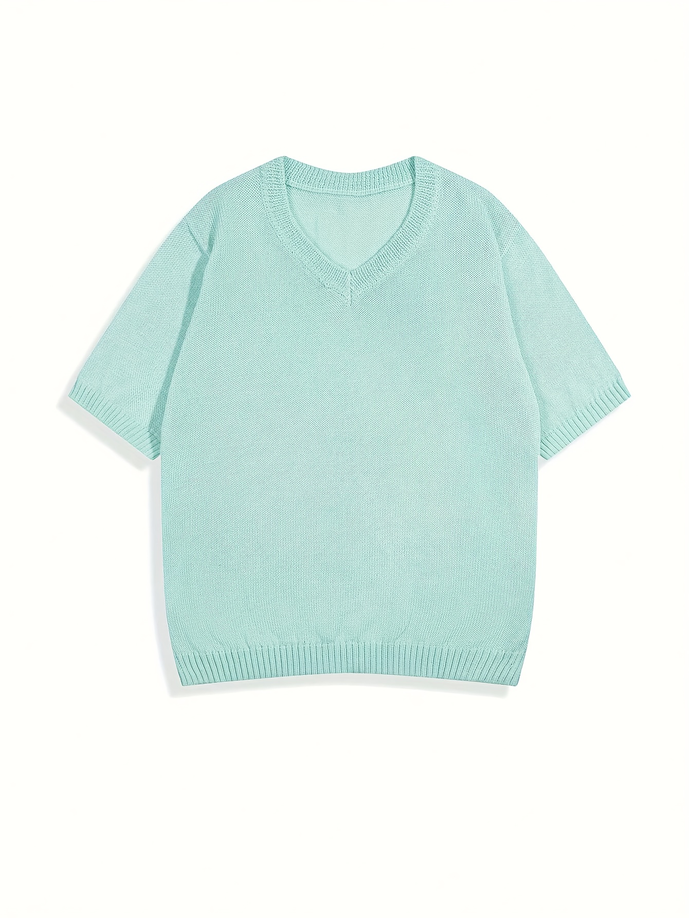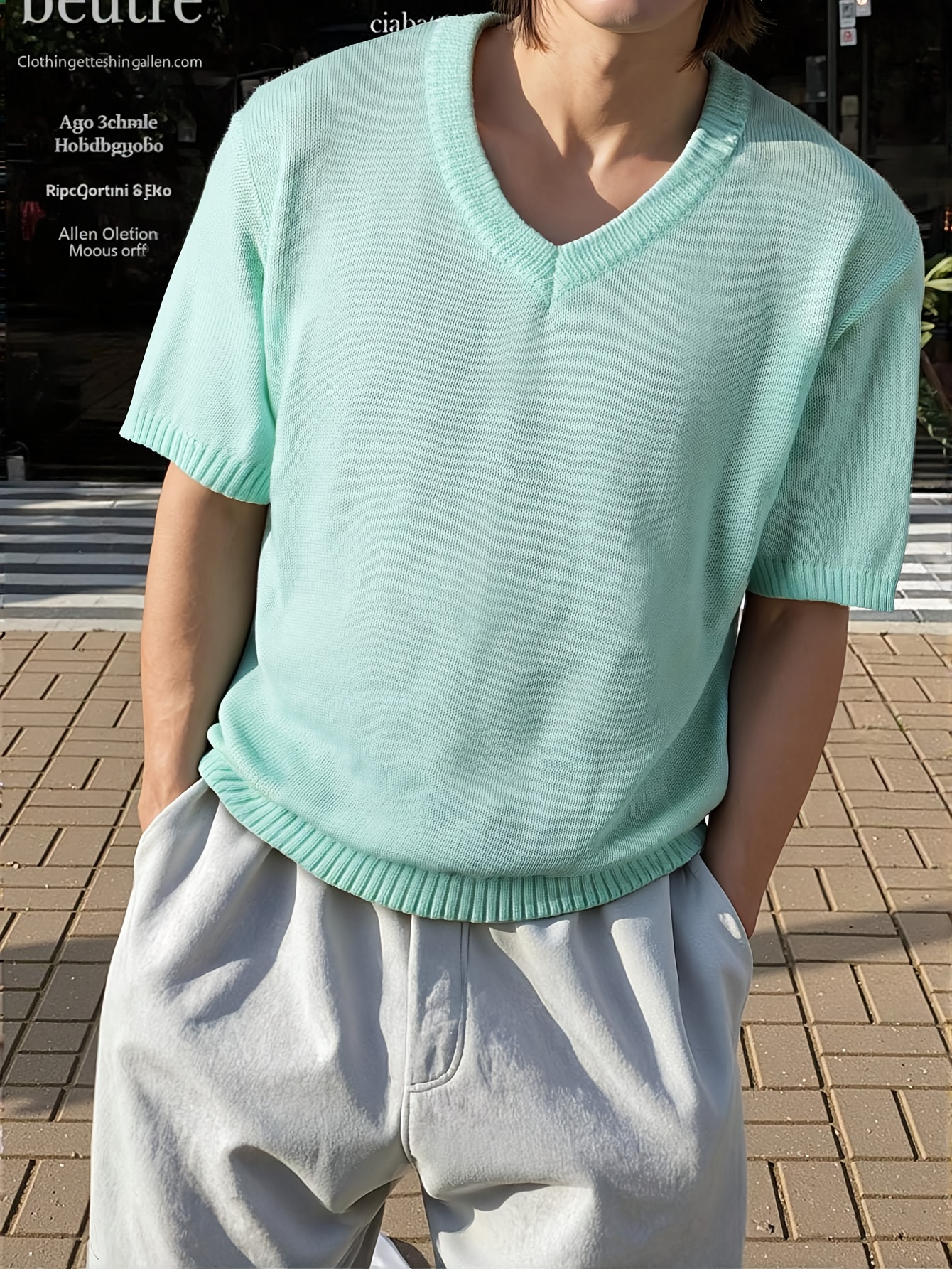 Men's Mint Green V-Neck Short Sleeve Sweater - Soft Pastel Casual Knit Sweater for Everyday & Formal Wear, All-Season Layering Essential, Minimalist Solid Color Design in Light Green (Hand Washable) - Versatile Spring Summer Outfits, Relaxed Fit with V-Neckline, Smooth Texture, Suitable for Men and Women, Solid Color Minimalist Style, Comfortable for All Seasons