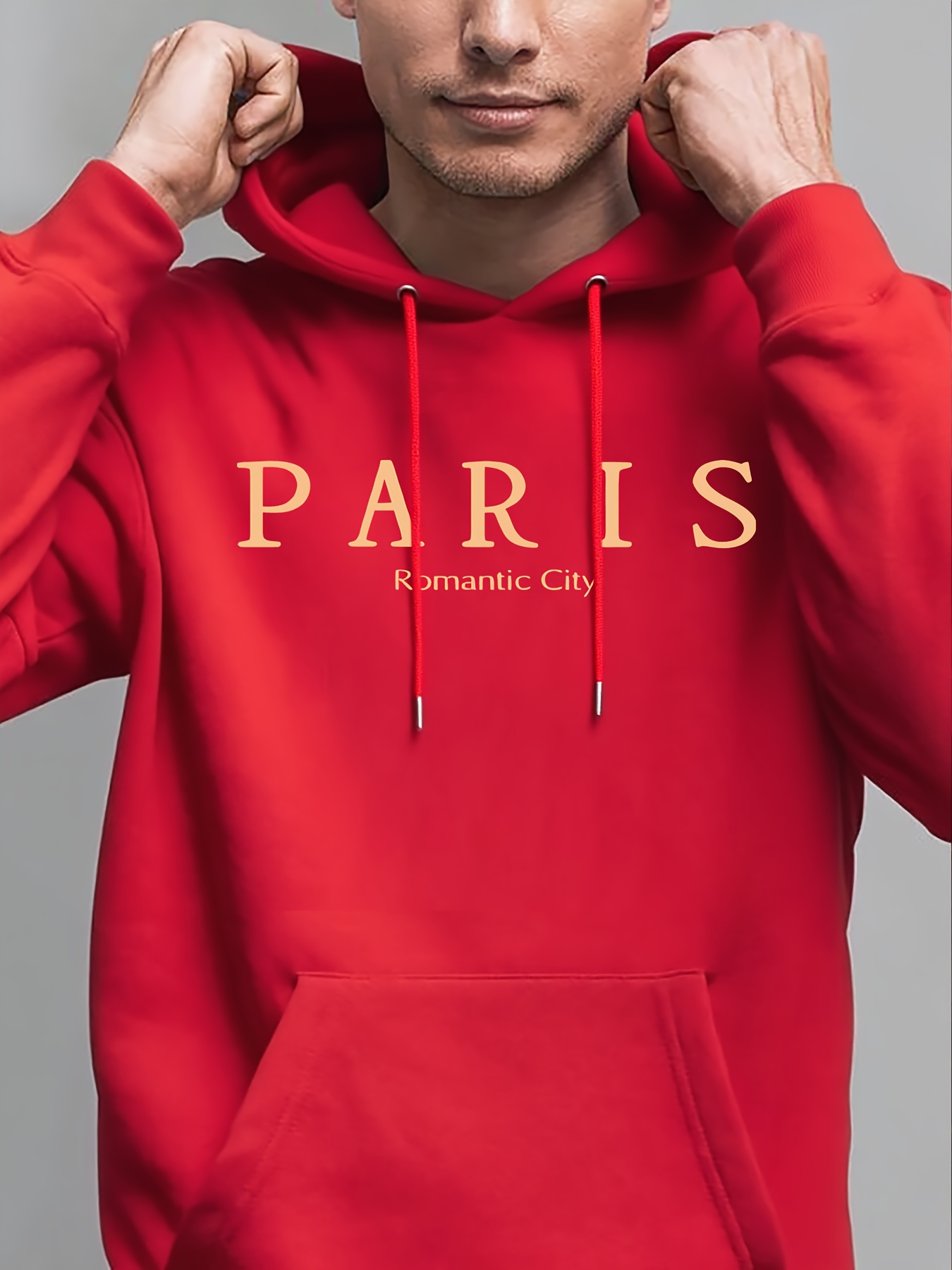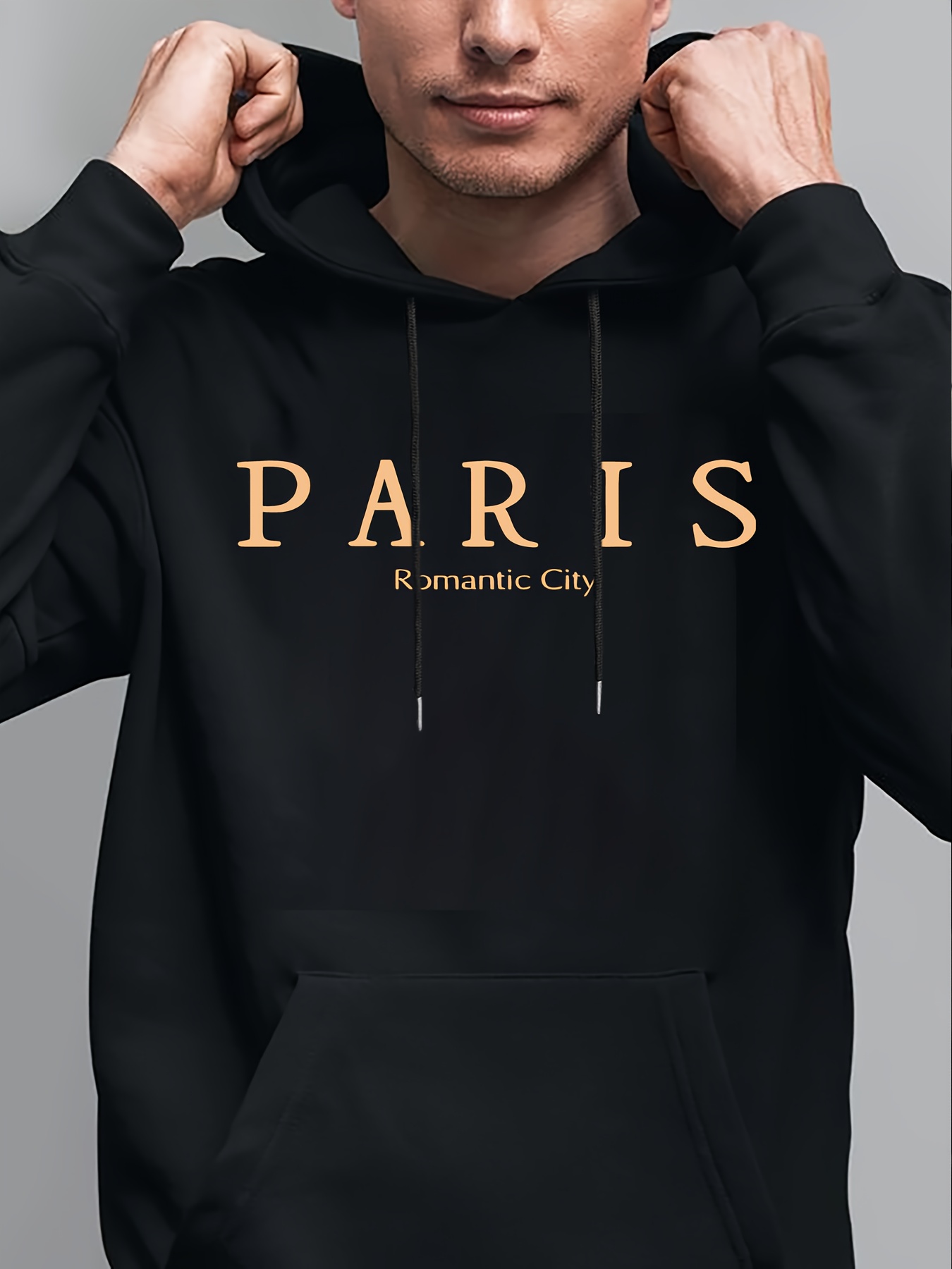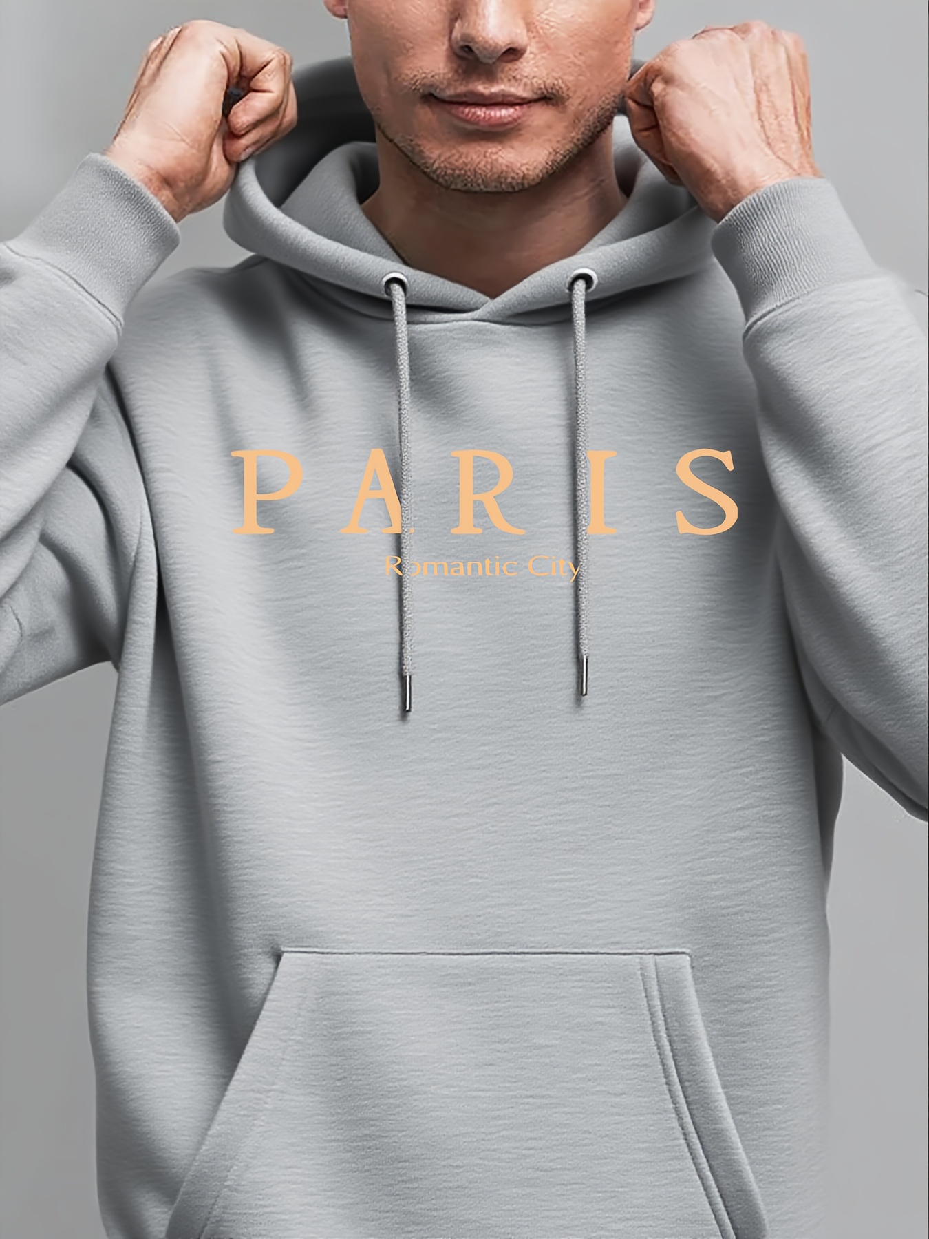 Men'S Oversized Hooded Sweatshirt with Paris Graphic Print & Kangaroo Pocket - Casual Streetwear Pullover, Drawstring Hood, Soft Comfortable Fabric, Round Neck Long Sleeve for Daily Wear, Outdoor Activities & Sports Style - Grey with Orange Lettering (No Belt, Regular Fit), Sudadera De Hombre, Hoodie For Men, Men Hoodie