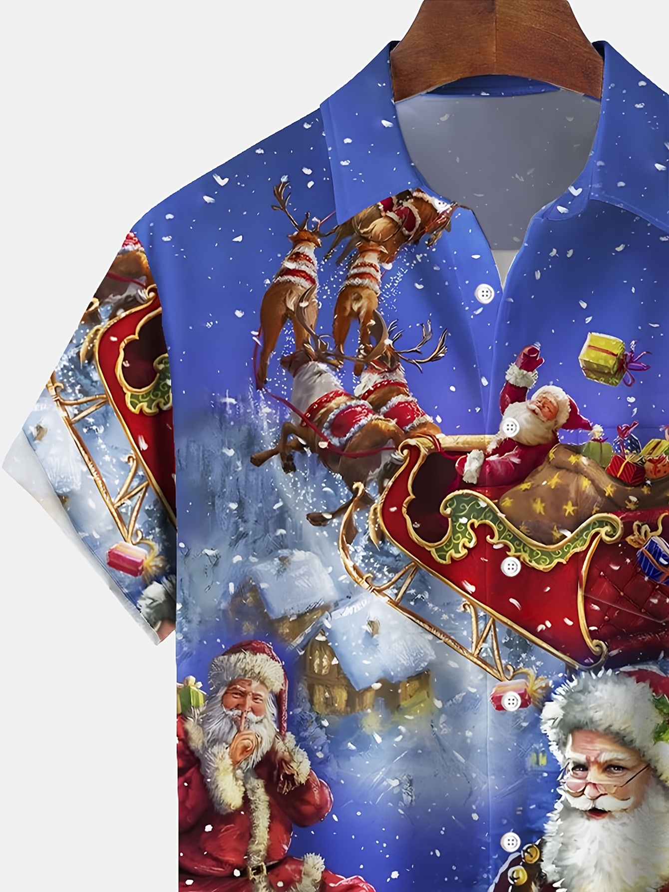 Men's Vintage Christmas Santa Claus Print Short Sleeve Shirt • Festive Santa & Reindeer Design with Pockets • Button-Up Collar Lightweight Polyester • Perfect for Holiday Casual Wear Christmas Shirts • Dress Shirts for Men Work Attire Seasonal Style • Contrast Placket Comfort Fit Work Long-Sleeve-Hackel-Shirt • Standard Style in Better Quality Patterns Whole Disc Ties and Studs with Style* • Incorporating Remarkable Conclusion Parenthesis