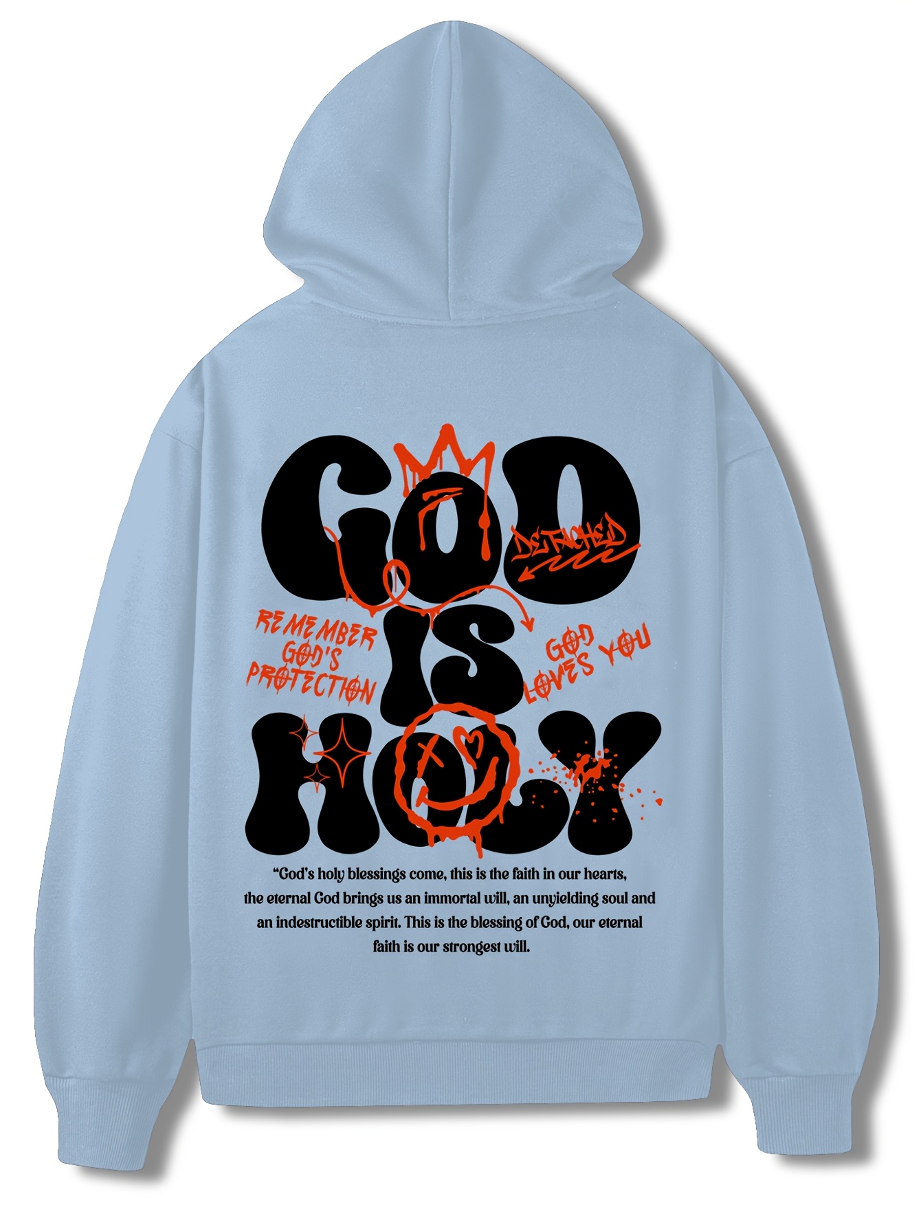 [Graffiti Print Hoodie] Warm Casual Graffiti Print Hoodie - Men's 'GOD IS HOLY' Pullover with Drawstring & Kangaroo Pocket for Fall/Winter