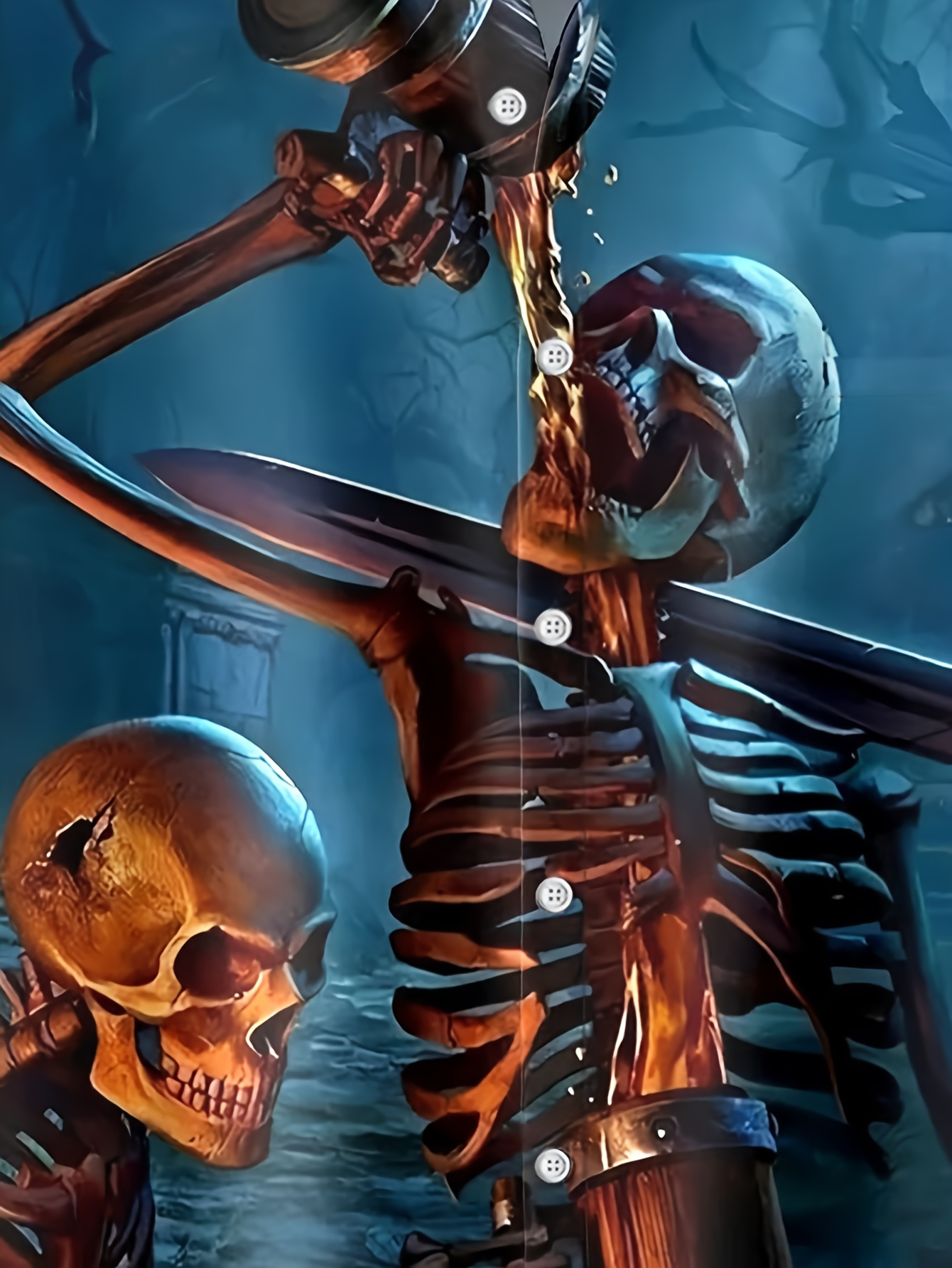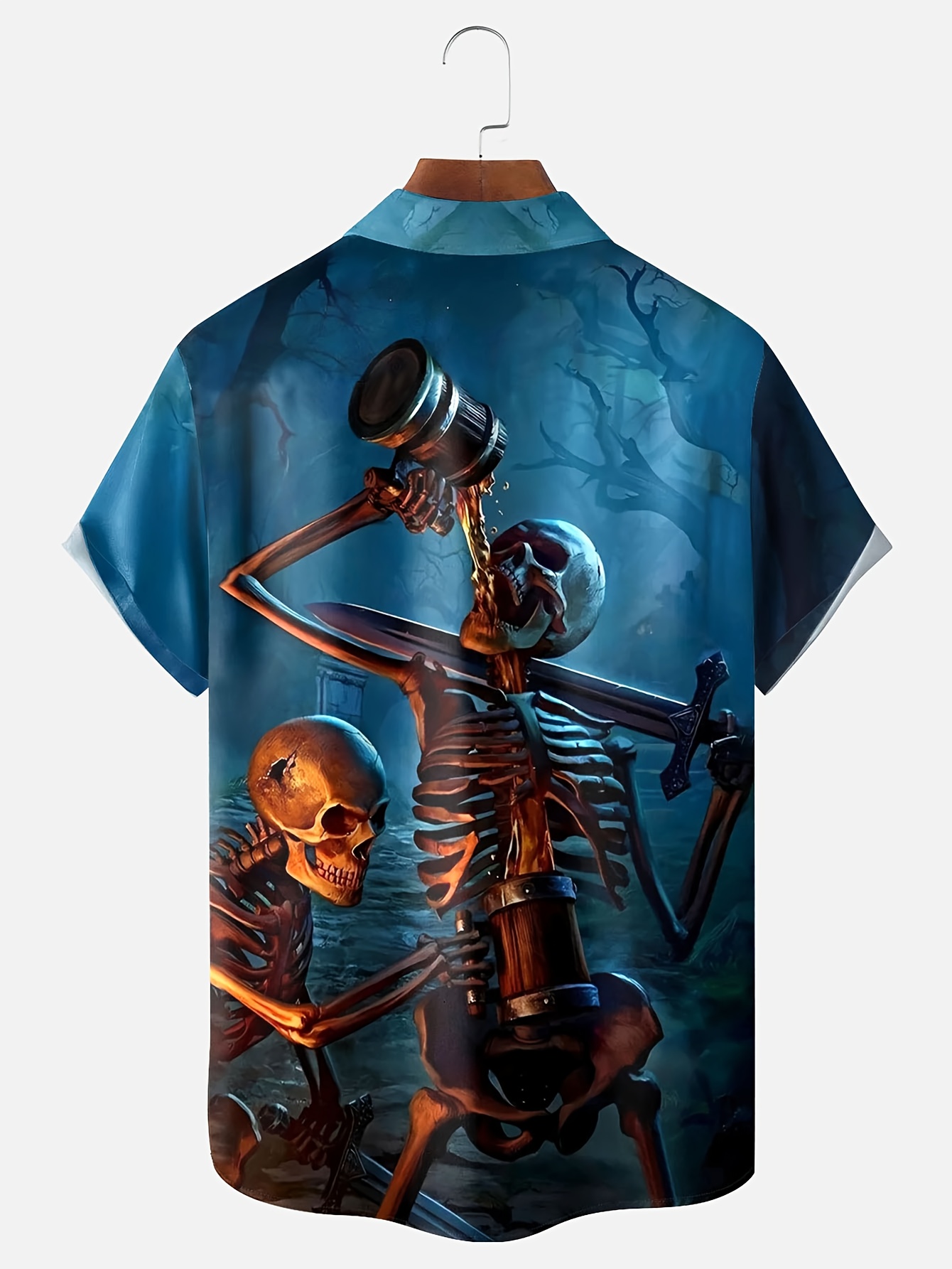 Men'S Halloween Gothic Shirt - Spooky Skeleton, Drinking Beer Party Costume - Button-Up Front - Lightweight Summer Formality - Perfect for Halloween Parties, Themed Events & Casual Attire - Funny Halloween Outfit for Men