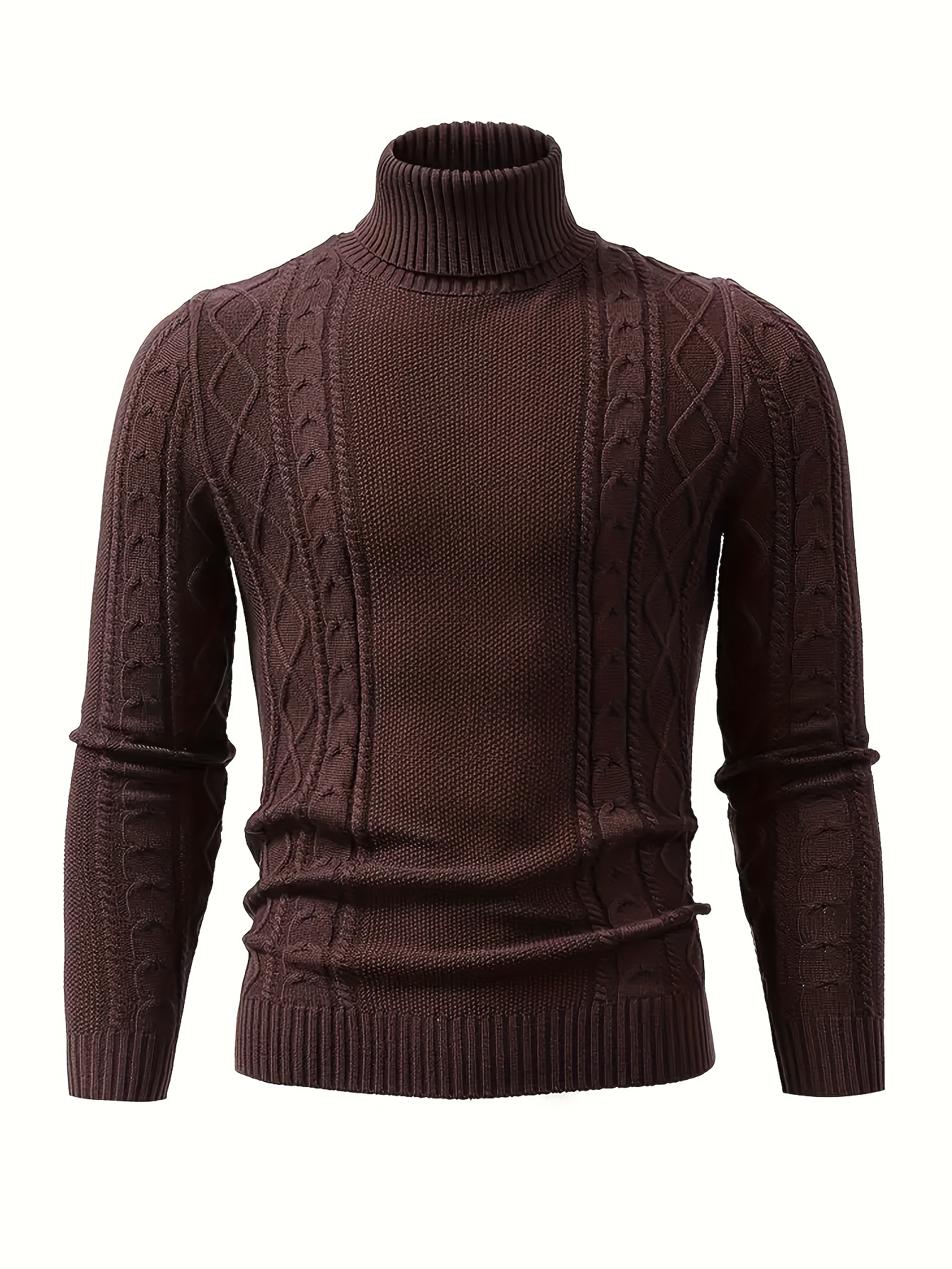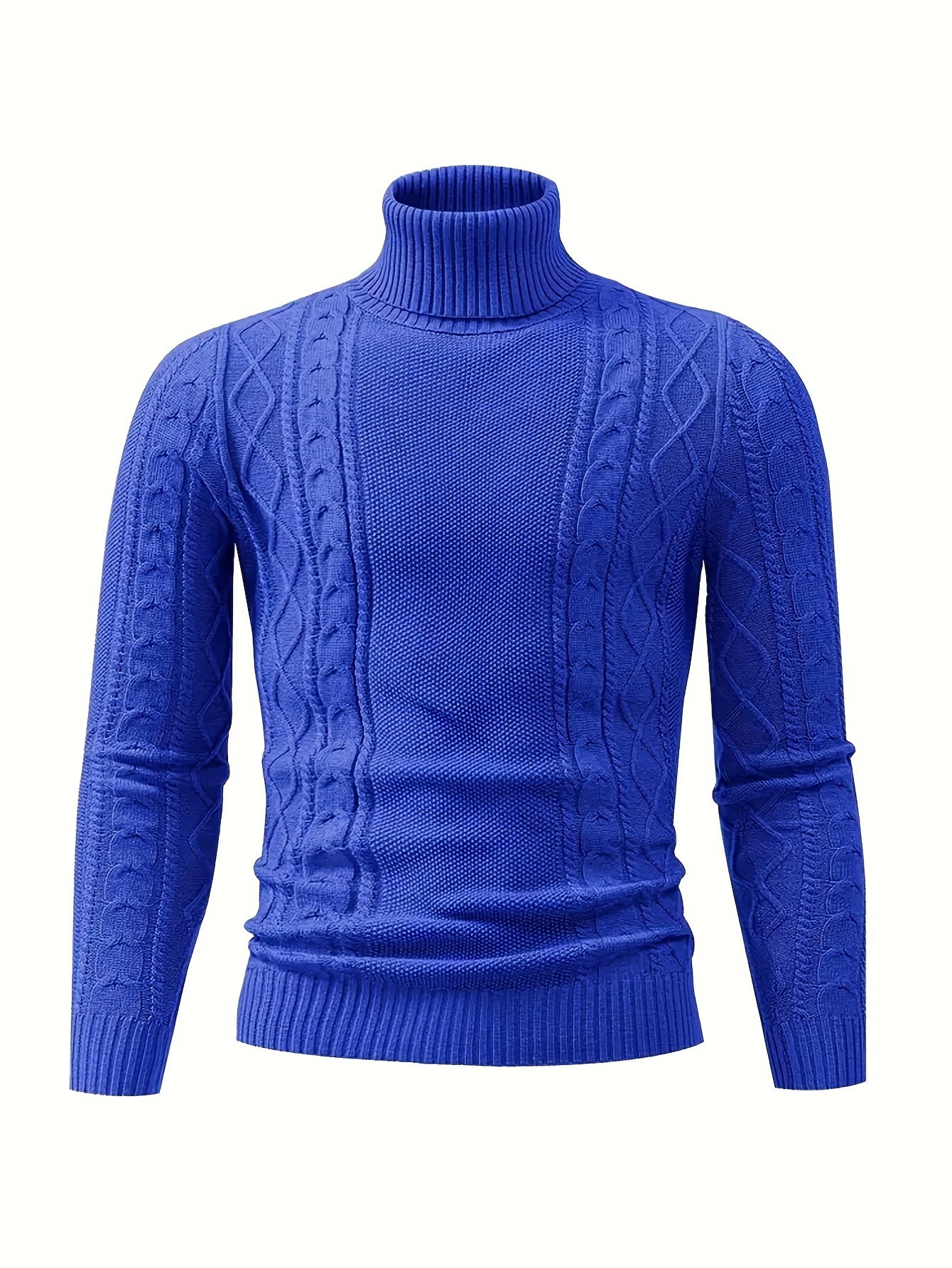 Men's Mustard Yellow High Neck Cable-Knit Sweater - Soft Stretchy Mid-Weight Pullover, Regular Fit Casual & Formal Wear, Hand Wash Only, Classic Comfort for Everyday, Pullover Style, Ribbed Cuffs