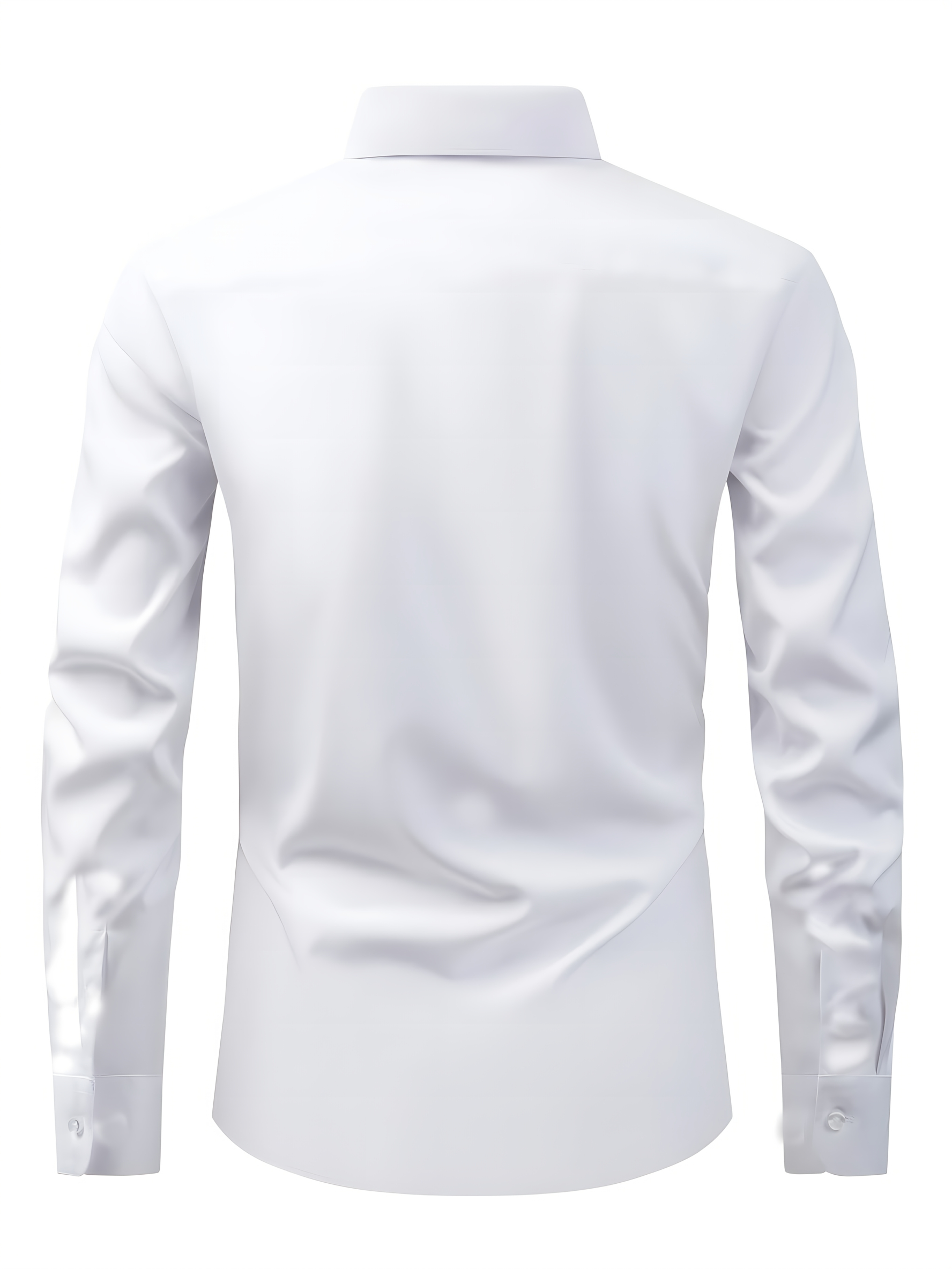 Men'S Polyester Casual Dress Shirt - Solid Color, Button-Up, Lapel Collar, Moderate Stretch, Comfortable Design for All Seasons, 120g/㎡, Casual Wear|Modern Casual Shirt|Sleek Appearance