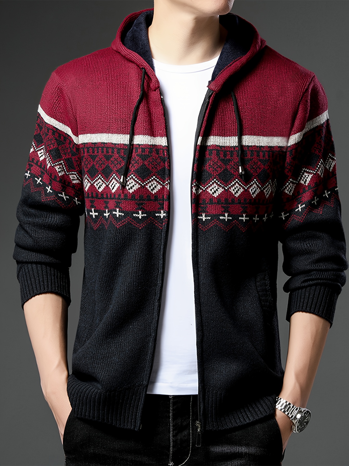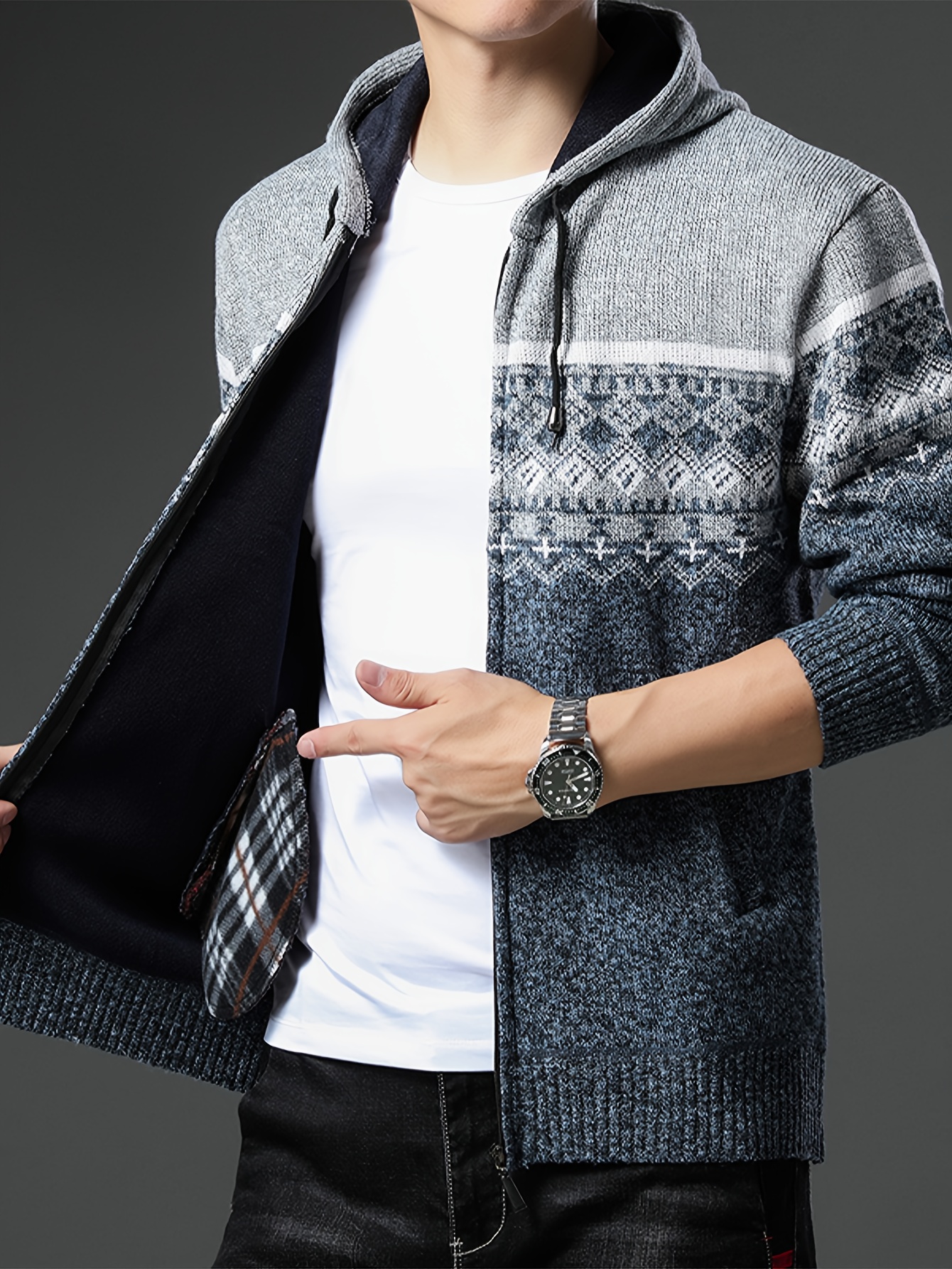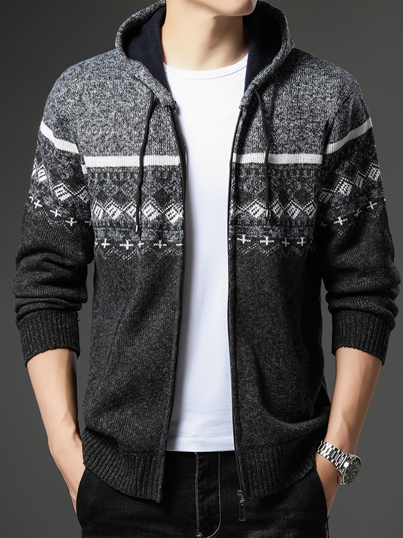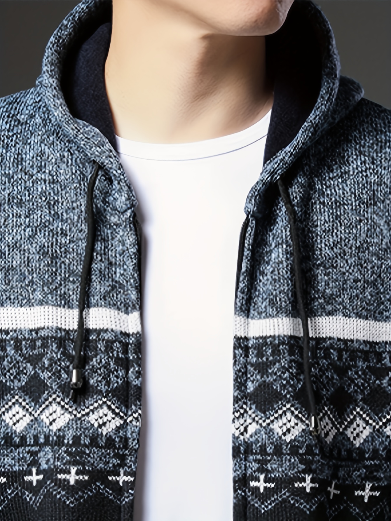 Autumn and winter new casual Men's fashion jacquard hooded knitted cardigan sweater jacket warm top, Autumn Outfit, Cozy Sweater, Knitted Design, Trendy Knitwear, Durable Stitching, Pullover Hoodie, Men’S Sweater, Streetwear Lovers, Winter Wardrobe