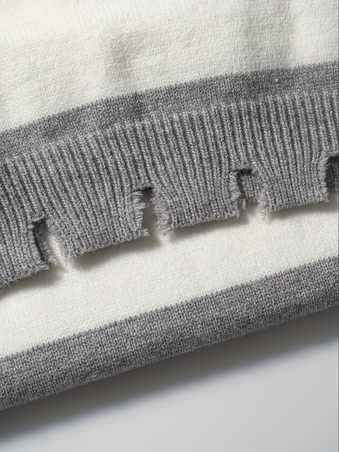 Long-Sleeved Sweatshirt for Autumn And Winter, Featuring a Stylish Checkered Perforated Design with a Unique Distressed Round Neck, Perfect for Keeping Warm for Men., Autumn Clothes Men, Jumpers For Men, Men Sweatshirt, Mens Jumpers, Mens Sweaters, Pullover Men, Sweatshirt Men, Winter Jumper Men