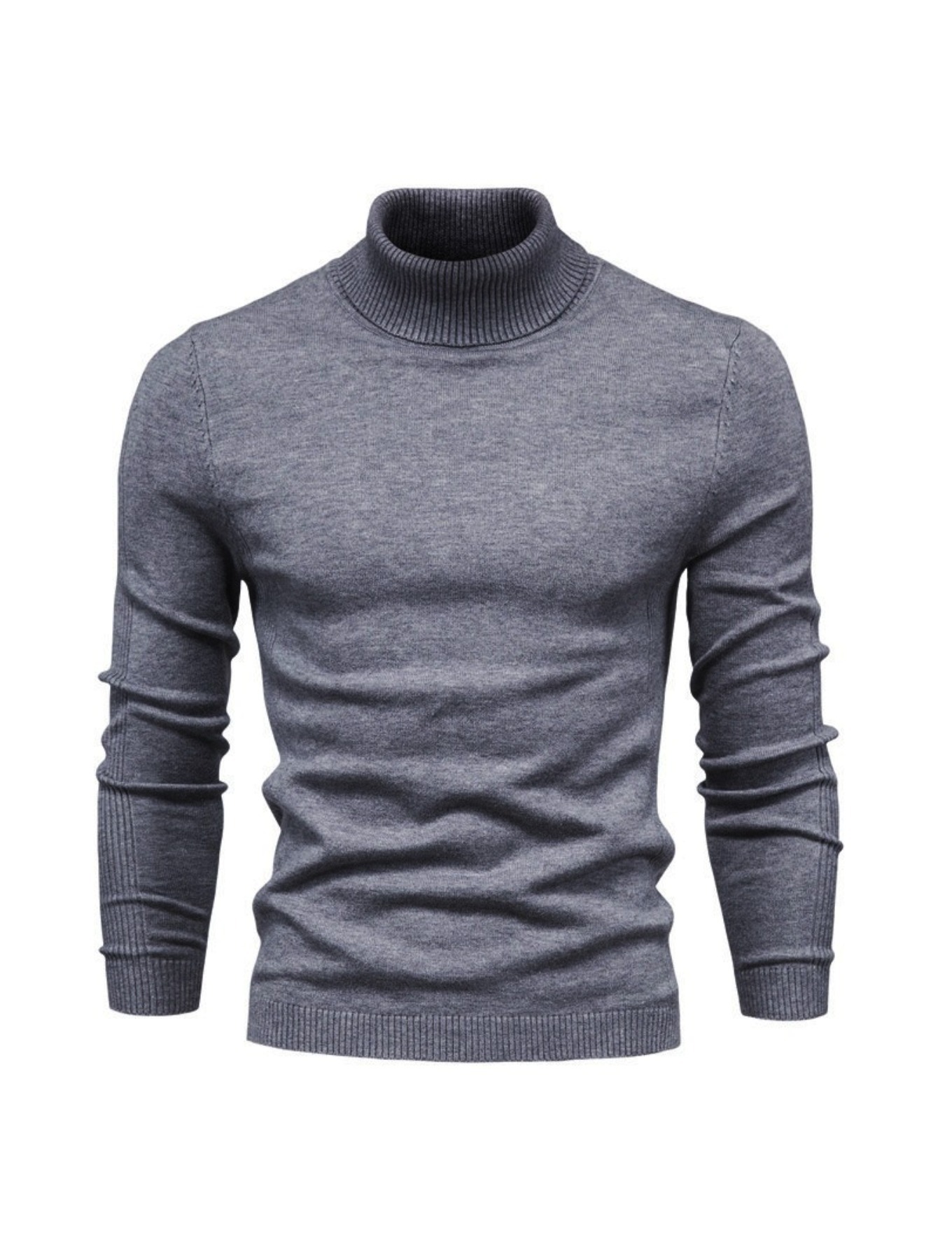Men'S Japanese-Inspired Turtleneck Sweater - Soft Warm Loose-Fit Pullover with High Neck & Long Sleeves, Solid Color Casual Winter Sweater for Fall/Winter, Versatile Layering Essential in Grey & More Neutral Tones - Easy-Care Knit Fabric