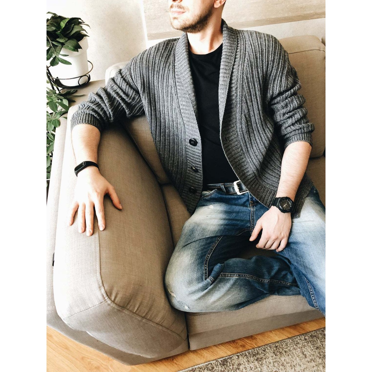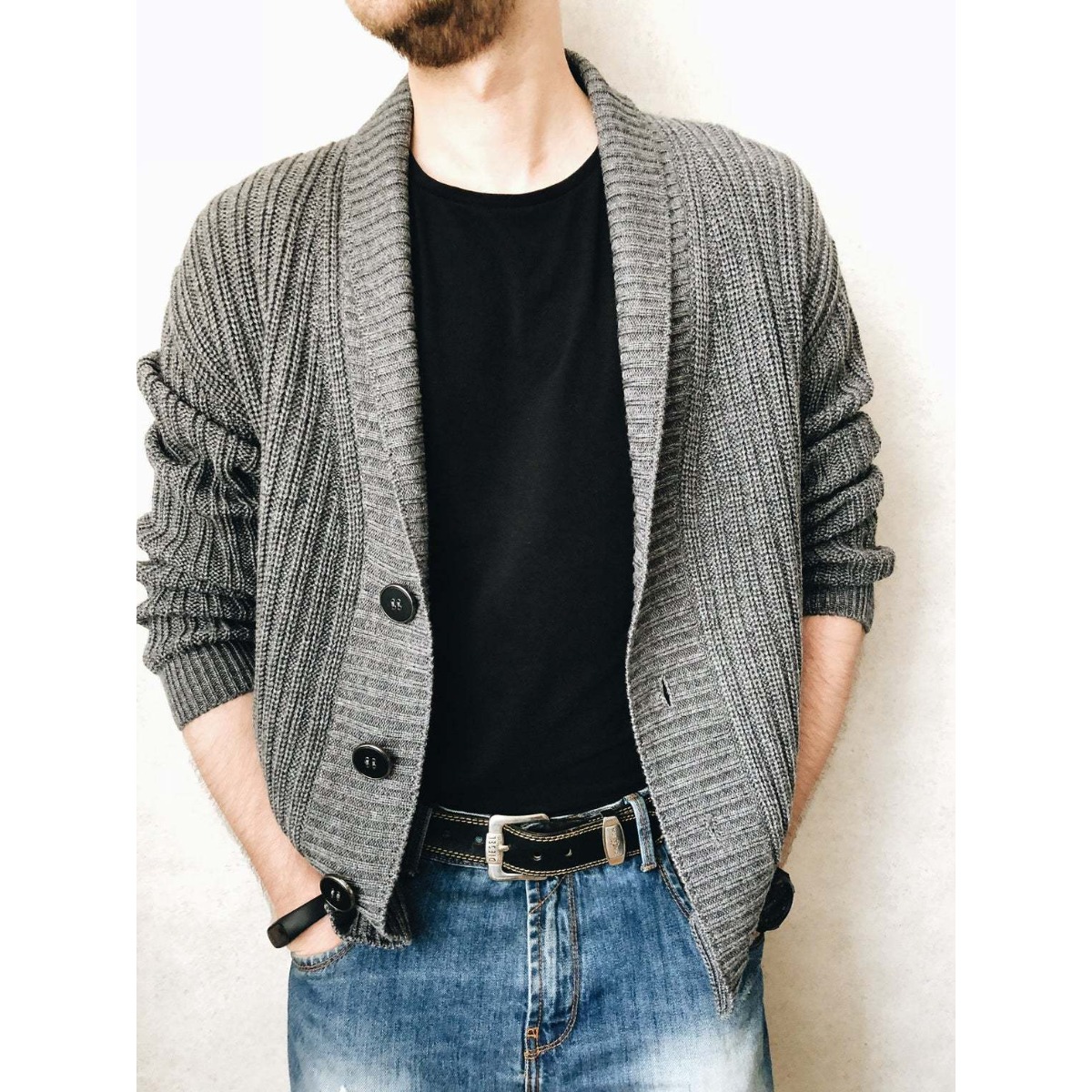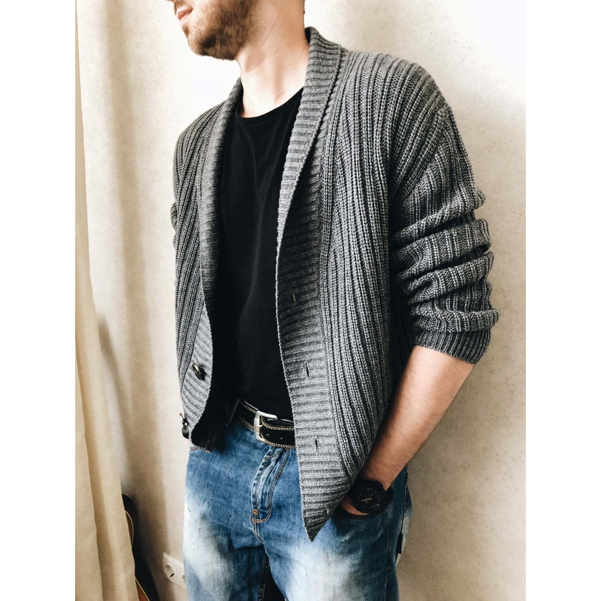Men'S Oversized Two-Tone Knit Cardigan Sweater - V-Neck Button-Front Closure, Cozy Winter Pullover with Chest Pocket, Slim-Fit Casual Sweater for Coffee Dates & Weekend Outings, Y2K Retro Layered Outfits (Autumn/Winter) - Solid Color Block Design