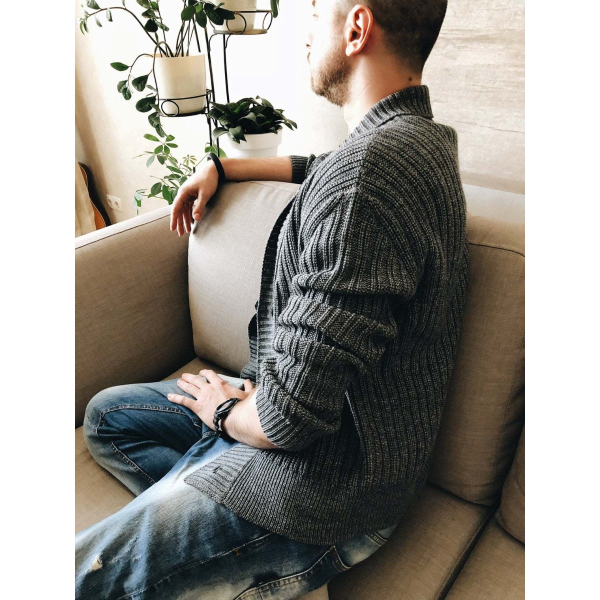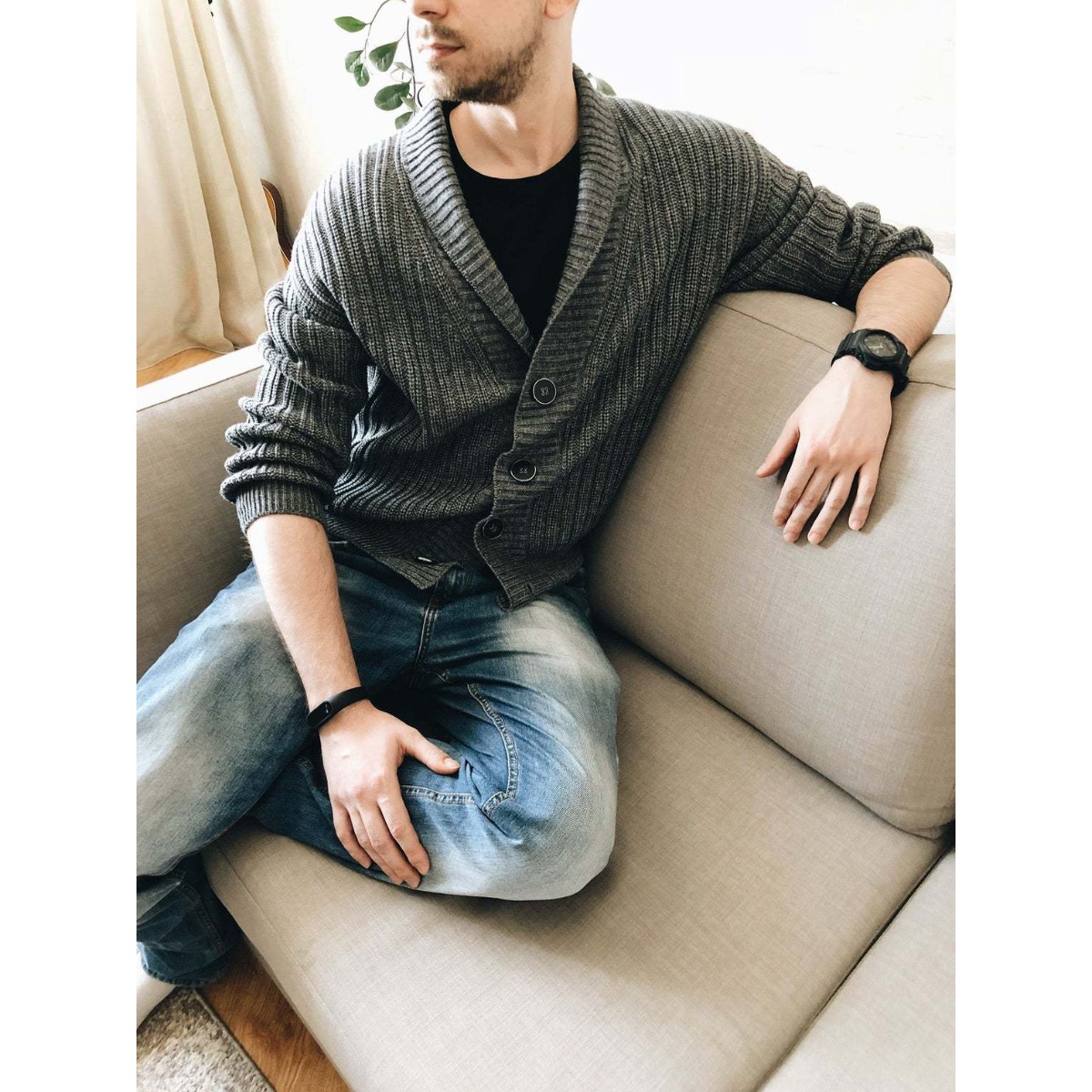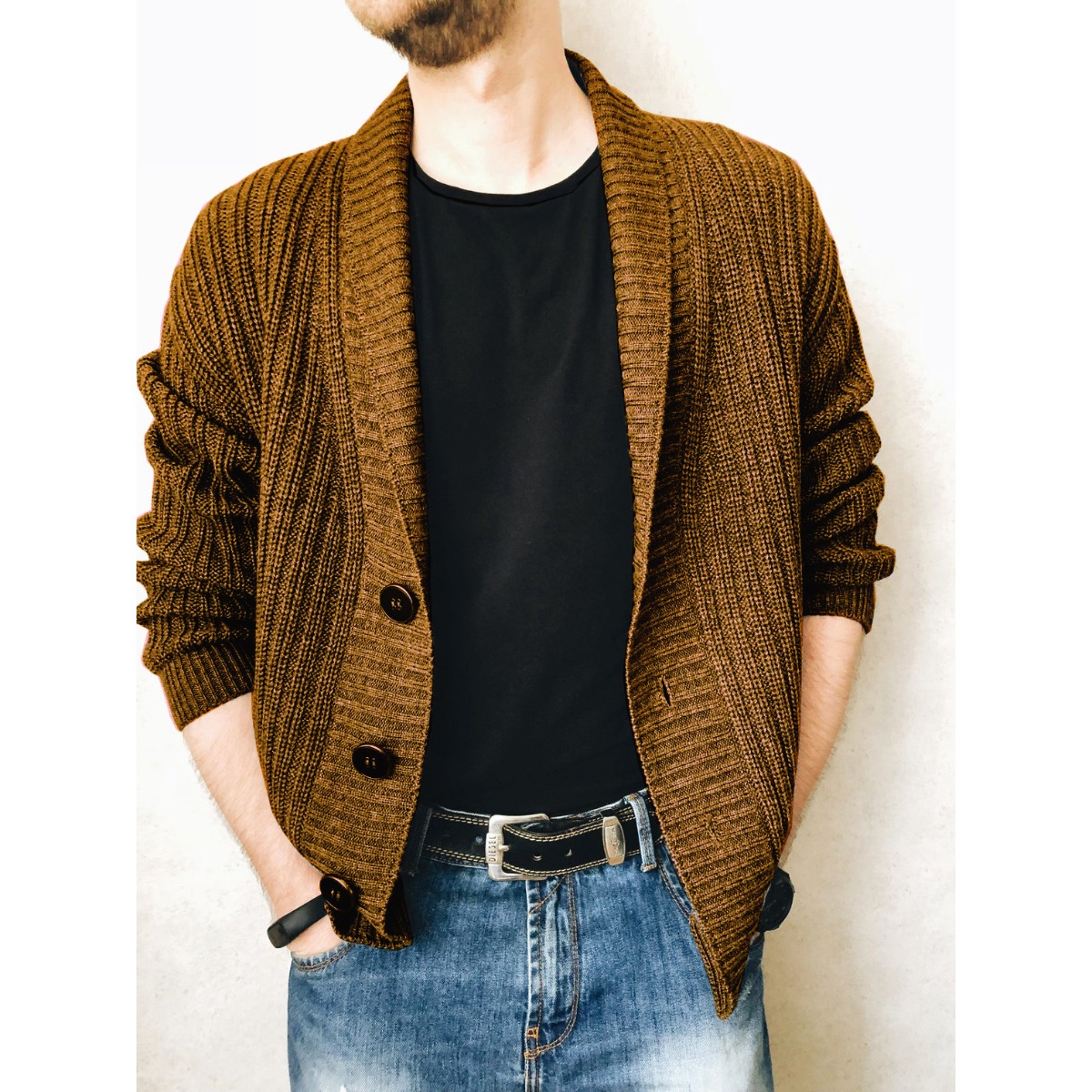 Men'S Oversized Two-Tone Knit Cardigan Sweater - V-Neck Button-Front Closure, Cozy Winter Pullover with Chest Pocket, Slim-Fit Casual Sweater for Coffee Dates & Weekend Outings, Y2K Retro Layered Outfits (Autumn/Winter) - Solid Color Block Design
