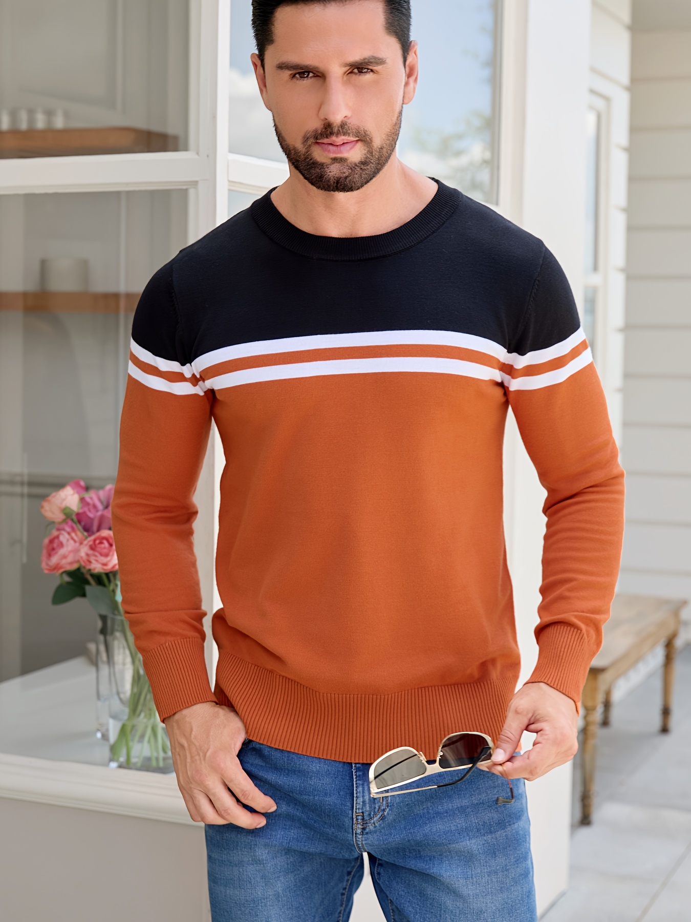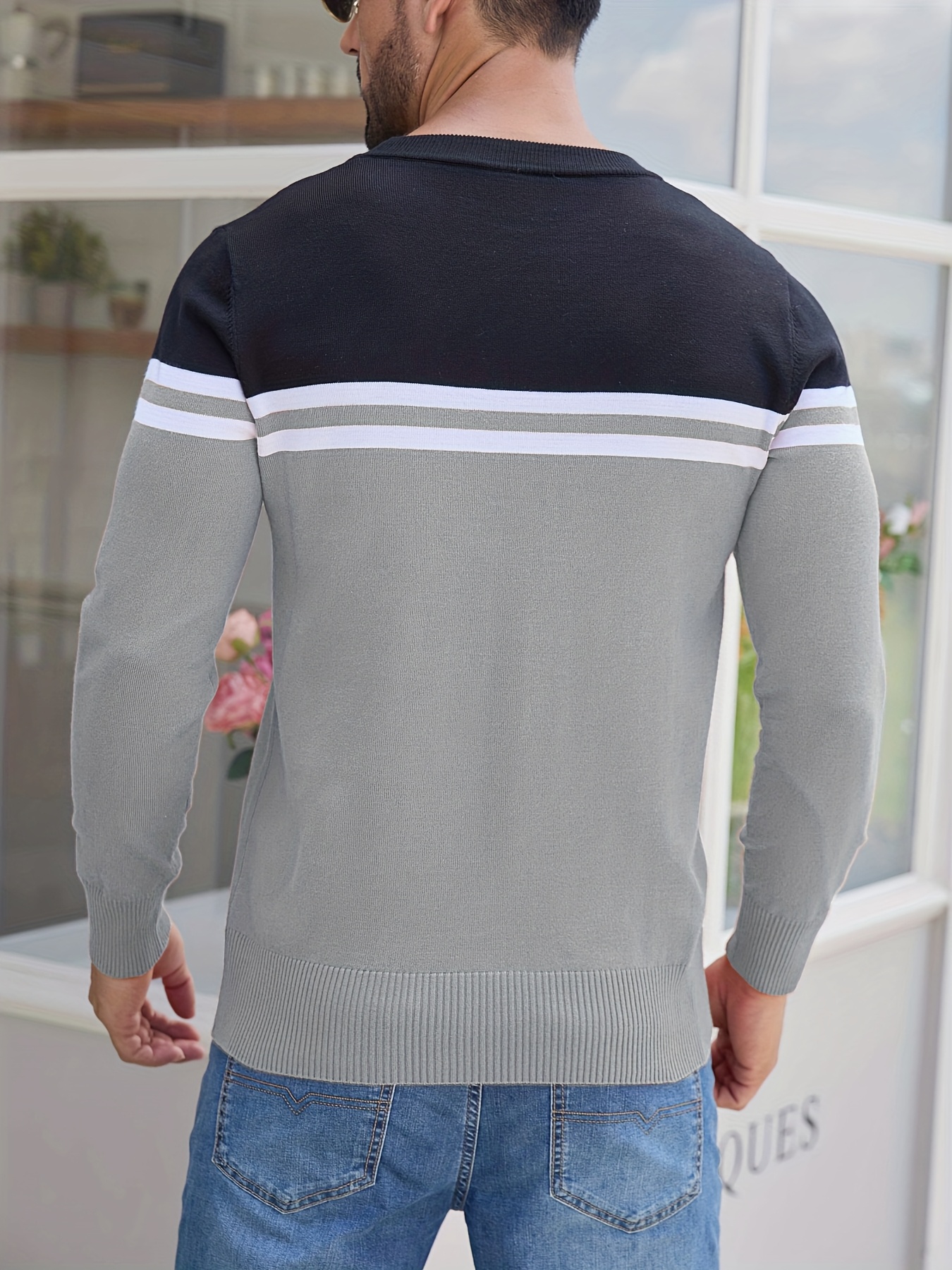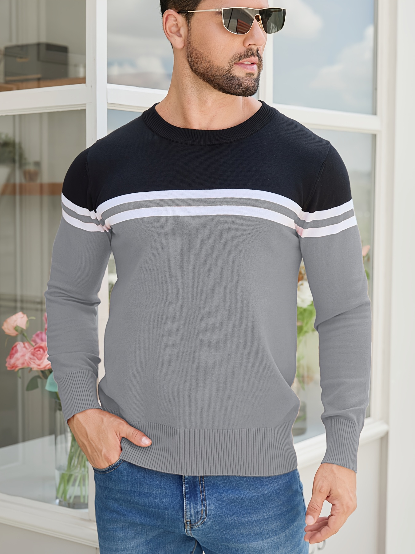 Men'S Thermal Long Sleeve Sweater - Winter Warmth Pullover with Striped Collar, H-Line Silhouette, Soft Stretchy Fabric for Office, Formal, Knit, Winter Sweater For Men, Winter Clothes For Men, Winter Clothes For Women, Winter Clothes For Women Plus