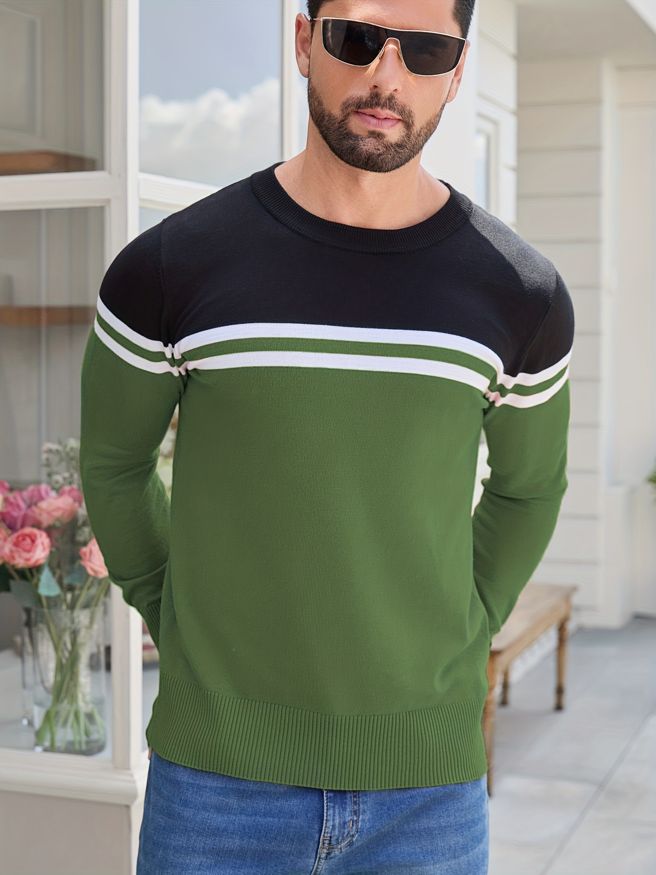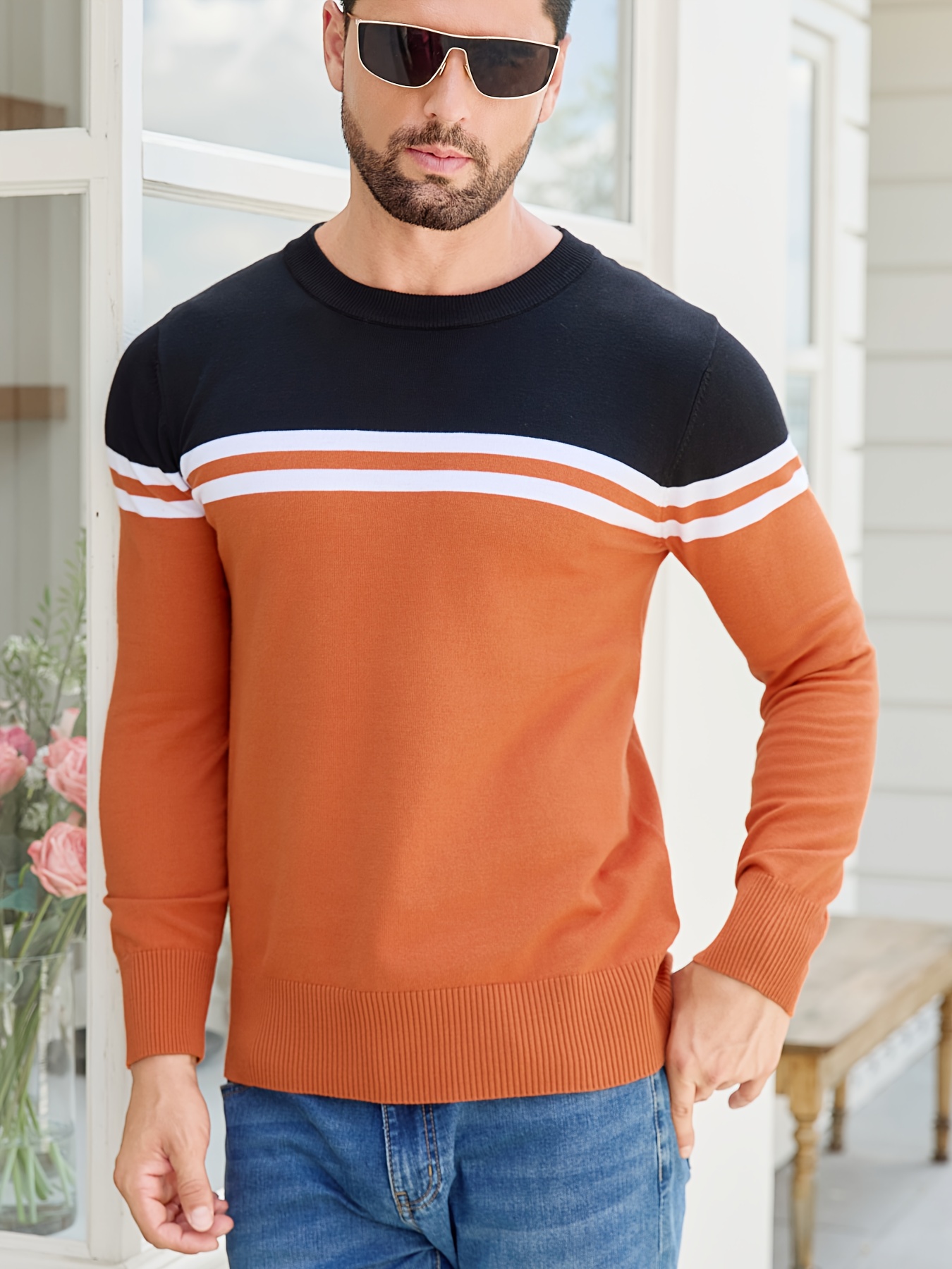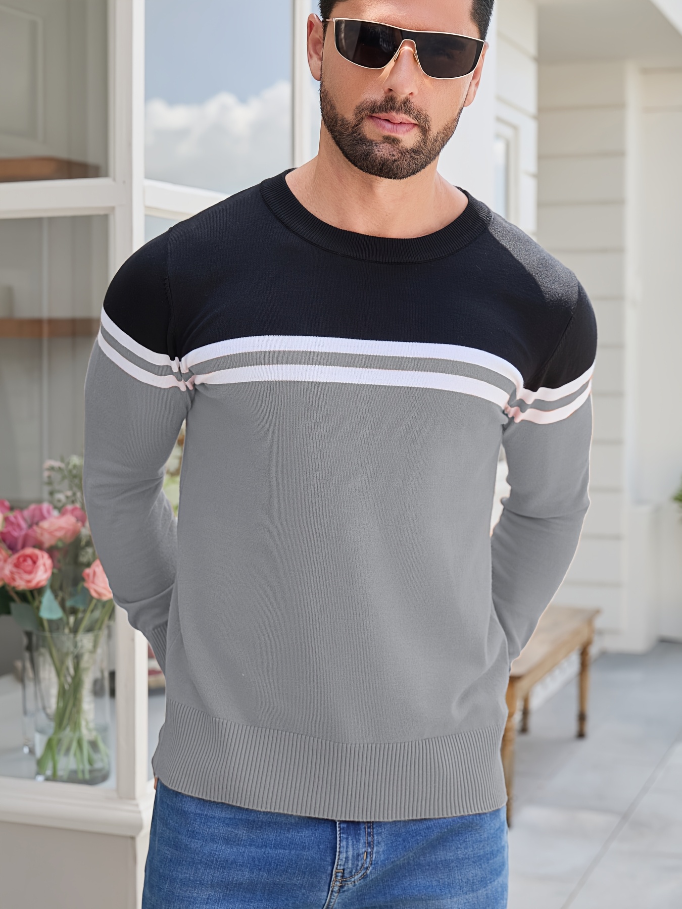 Men'S Thermal Long Sleeve Sweater - Winter Warmth Pullover with Striped Collar, H-Line Silhouette, Soft Stretchy Fabric for Office, Formal, Knit, Winter Sweater For Men, Winter Clothes For Men, Winter Clothes For Women, Winter Clothes For Women Plus