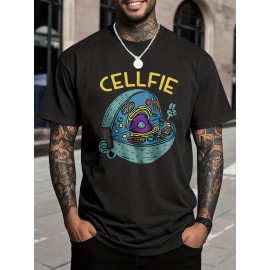 Men's 100% Cotton T-Shirt with Cellfie Cell Science Art Print - Slim Fit & Casual Round Neck Tee, Breathable Fabric with Science-Themed Cell Design for Tech Events, Biology Parties & Casual Attire