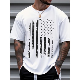 Men's American Flag T-Shirt 100% Cotton Regular Fit Casual Short Sleeve Patriotic Stars & Stripes Design for Summer Daily & Outdoor Wear, American Flag Shirt, Soft Fabric Tee, Outdoor Apparel, Classic Style, Durable Construction, Mens Tshirt, Summer Wardrobe