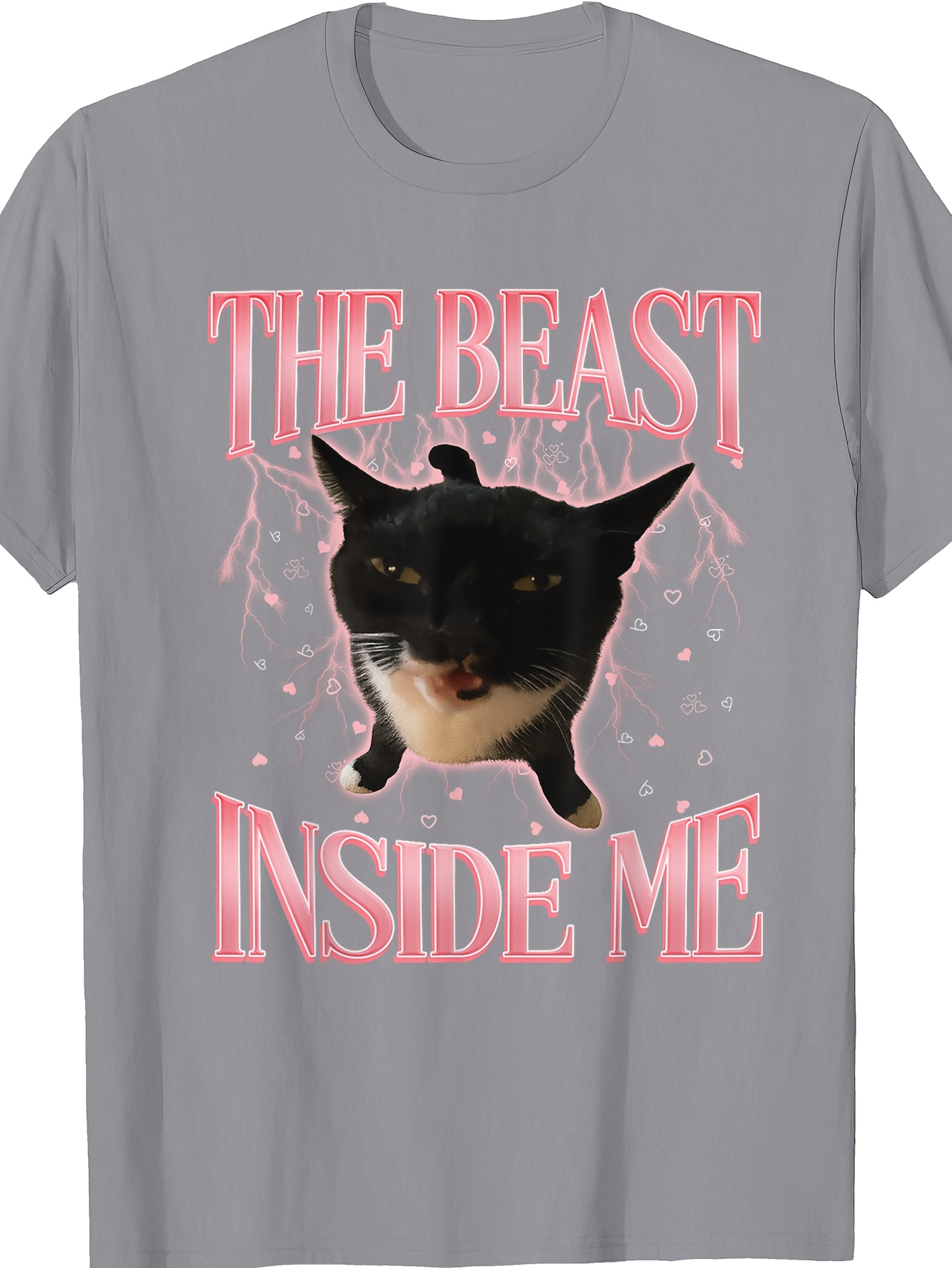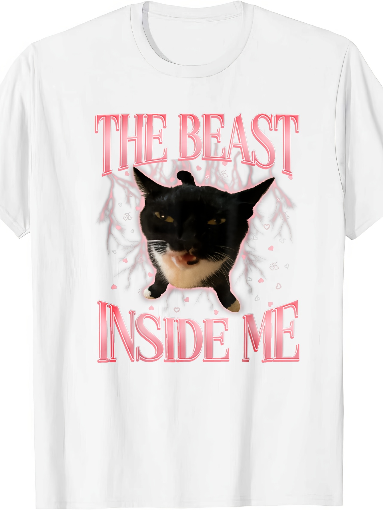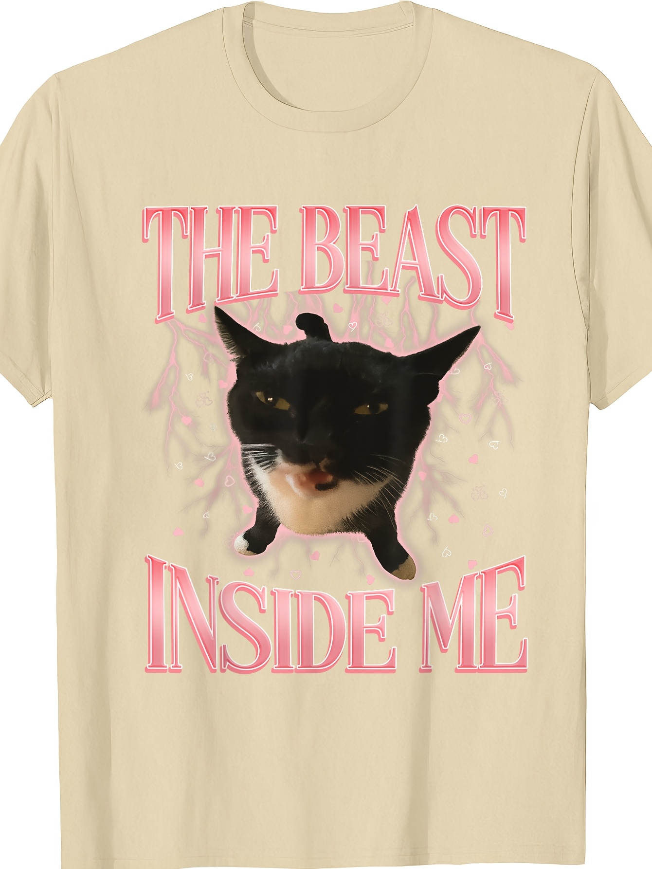 Funny Weird Cat Meme The Beast Inside Me Gen Z Tee | Cute Silly Cats Humor Tee Shirt, Crew Neck, Medium Stretch Fabric, Suitable for All Seasons and Various Occasions
