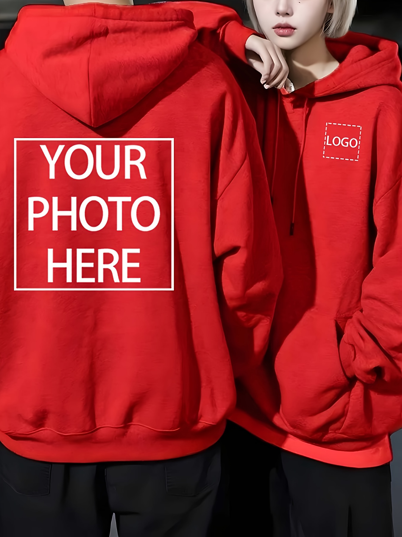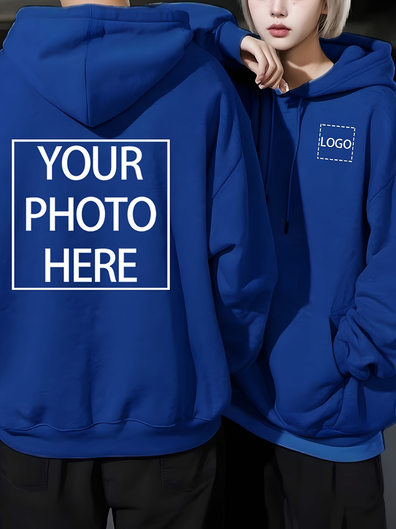 Men's Custom Photo/Text Hooded Sweatshirt - Personalized Logo & Photo Printing, Casual Loose Fit Pullover with Your Own Design, Machine Washable for Casual Attire, Events, Team Uniforms & Promotional Branding