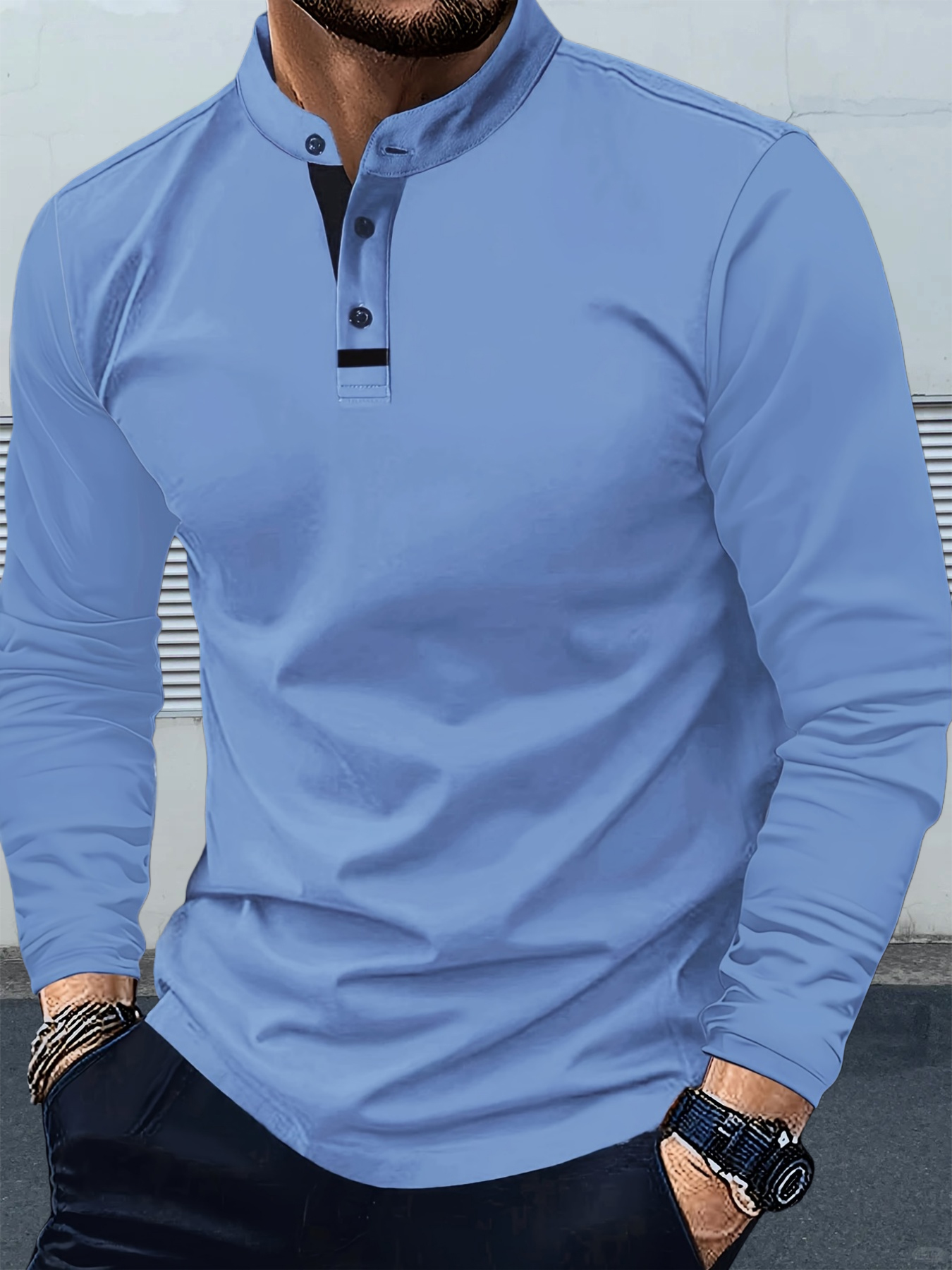Men'S Long Sleeve Henley Shirt - Classic Pointed Collar Solid Navy Blue, Business Casual & Weekend Outfits, Non-Stretch Fabric, Button-Front Placket, Formal & Casual Attire for Office, Semi-Formal Events - Ideal for Professionals & Everyday Use - Du