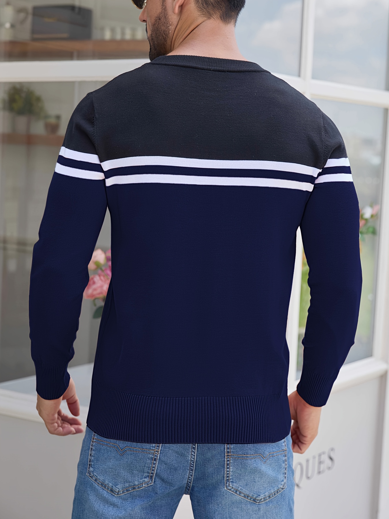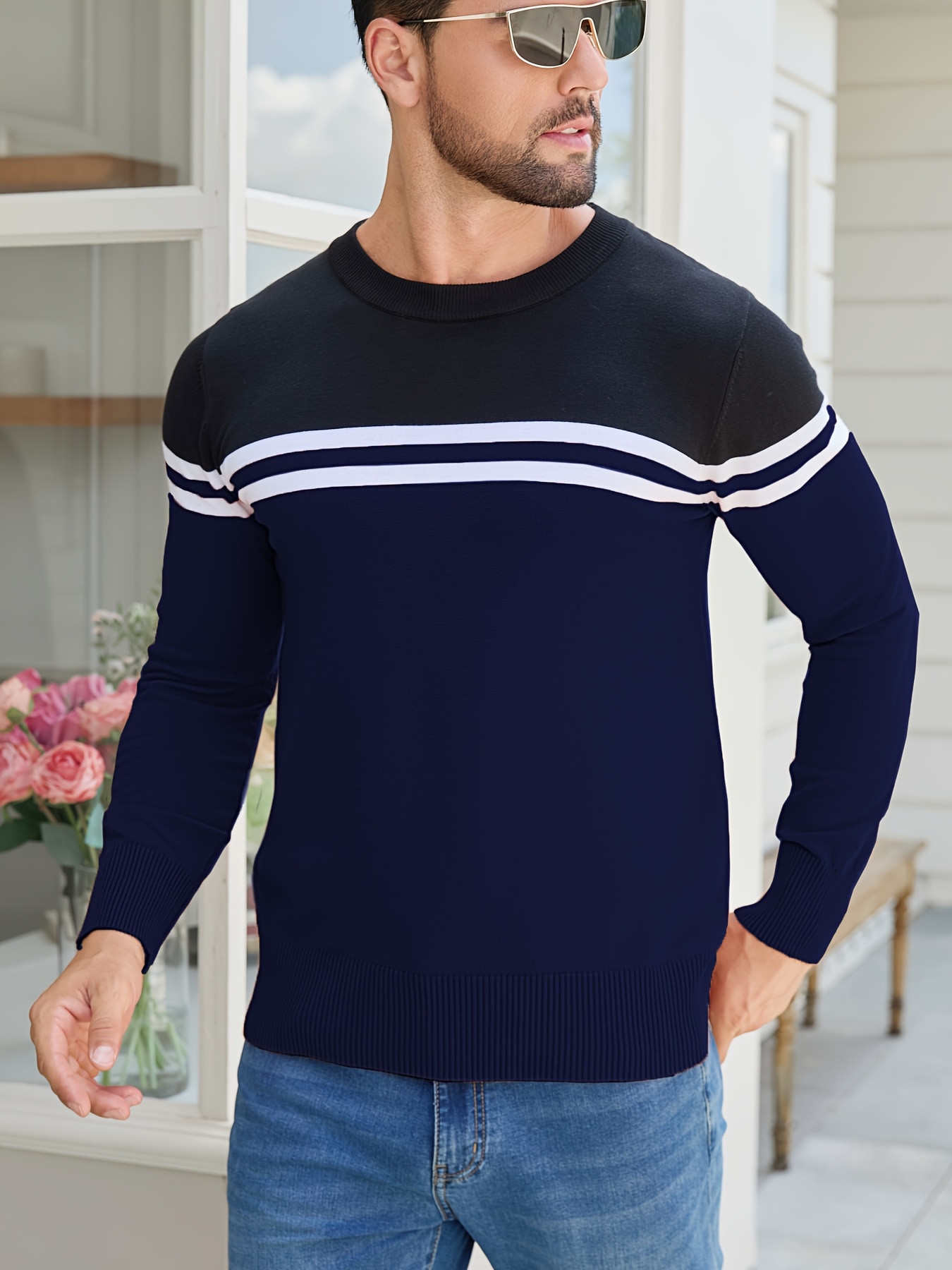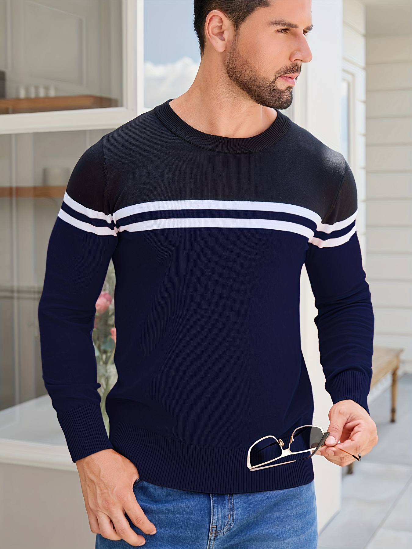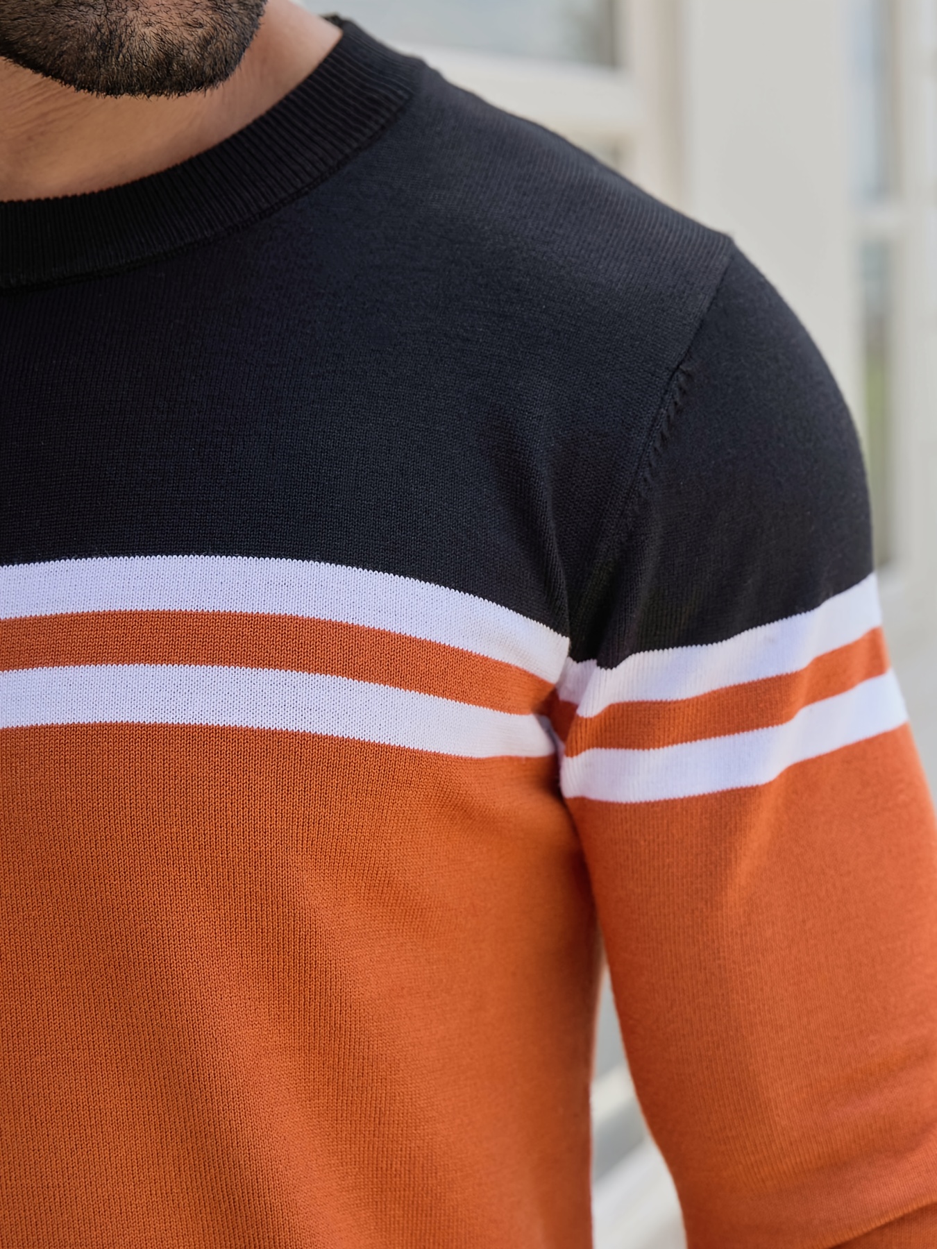 Men'S Thermal Long Sleeve Sweater - Winter Warmth Pullover with Striped Collar, H-Line Silhouette, Soft Stretchy Fabric for Office, Formal, Knit, Winter Sweater For Men, Winter Clothes For Men, Winter Clothes For Women, Winter Clothes For Women Plus