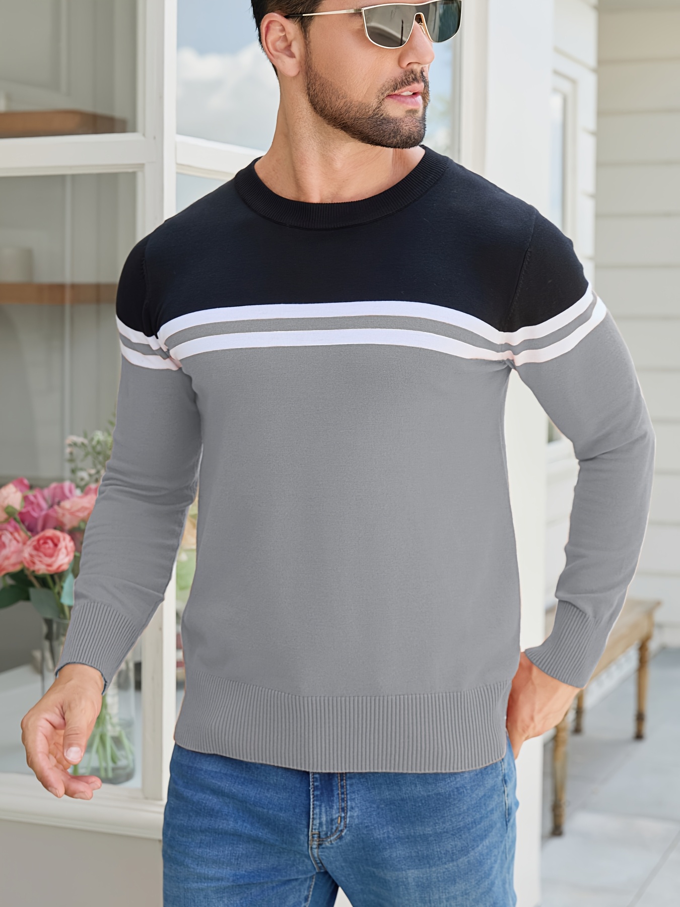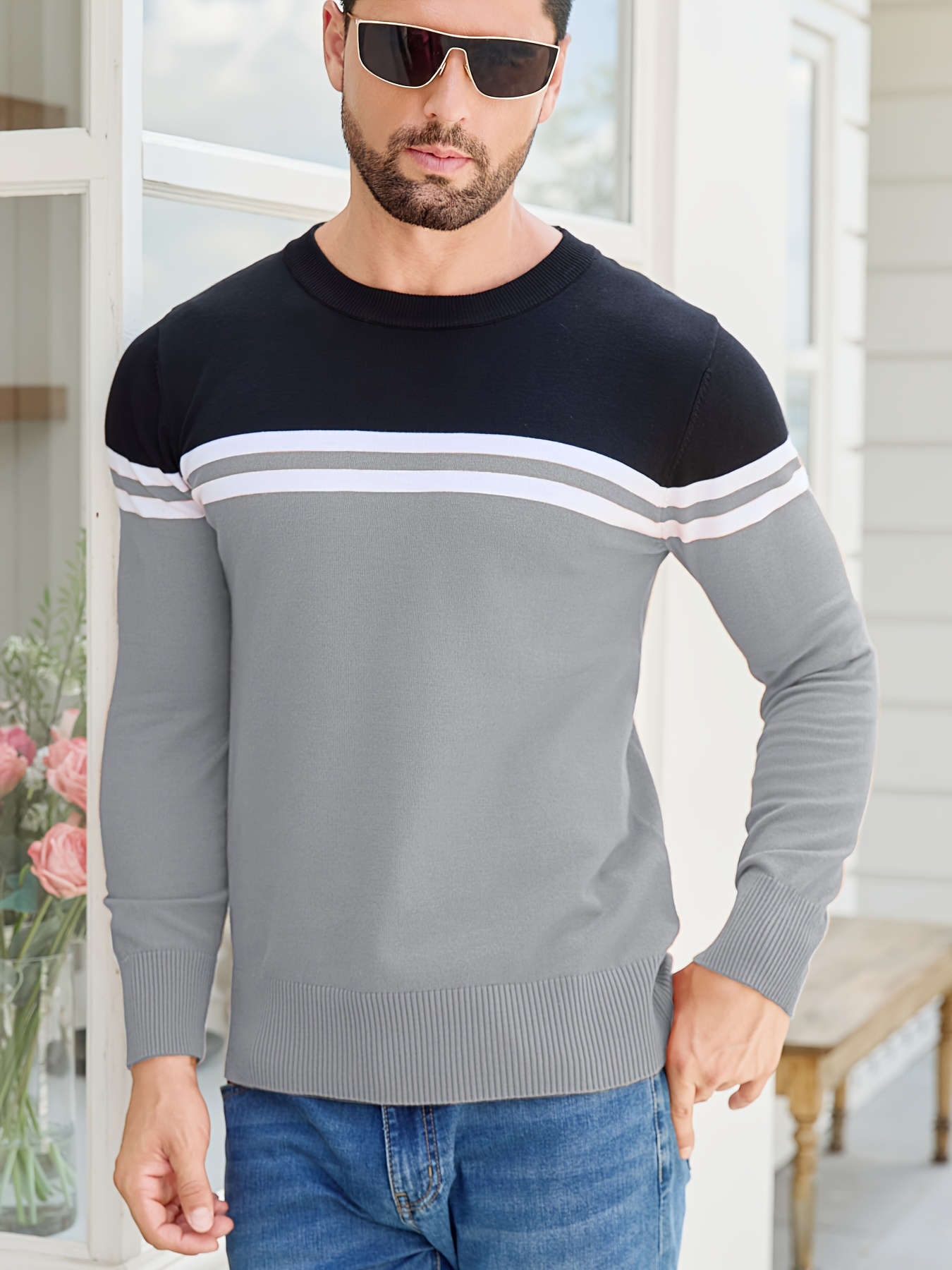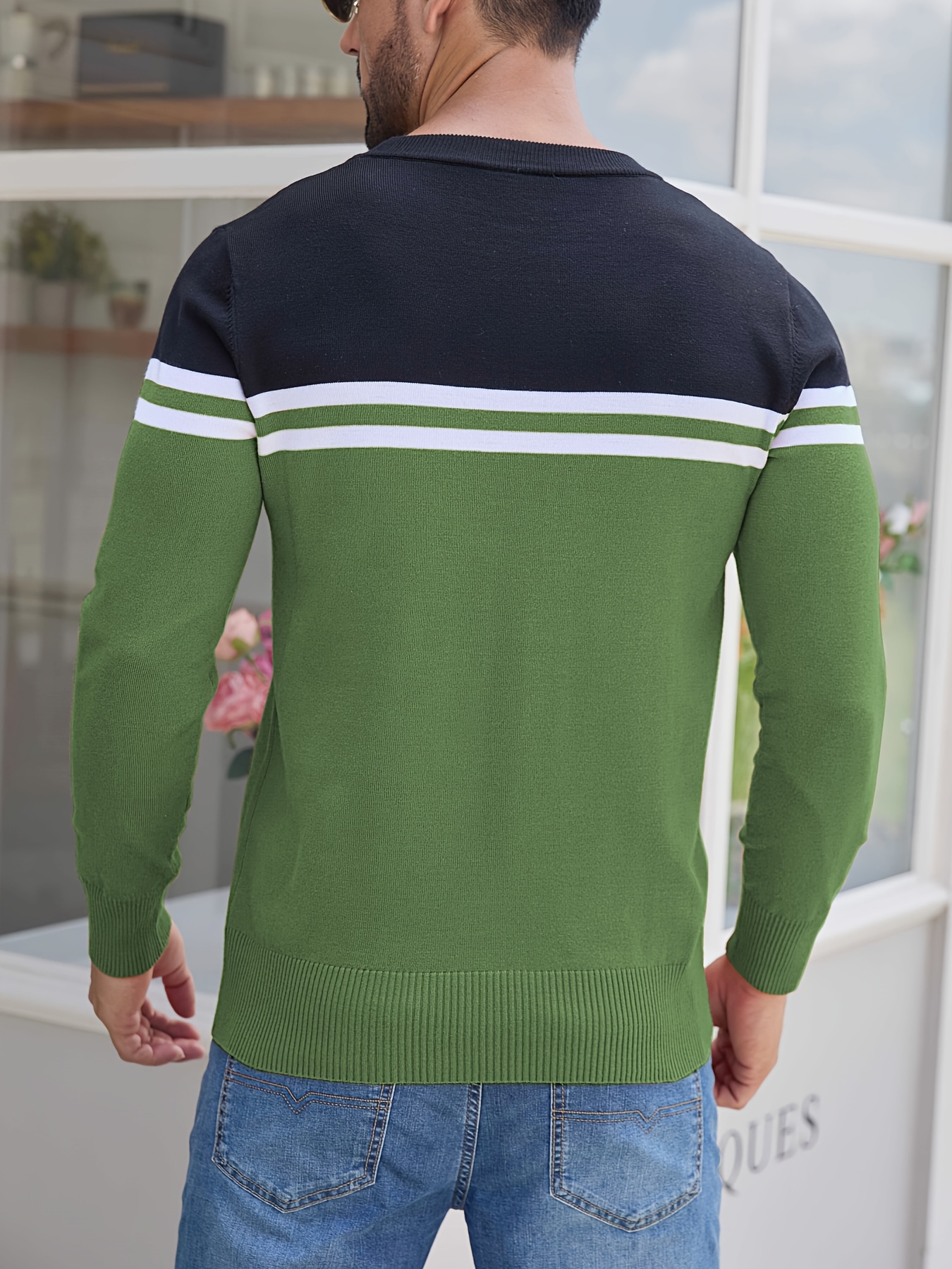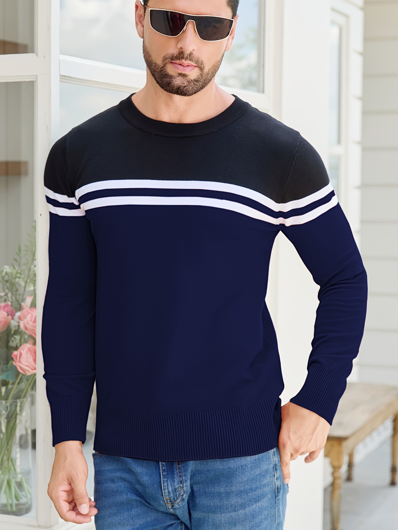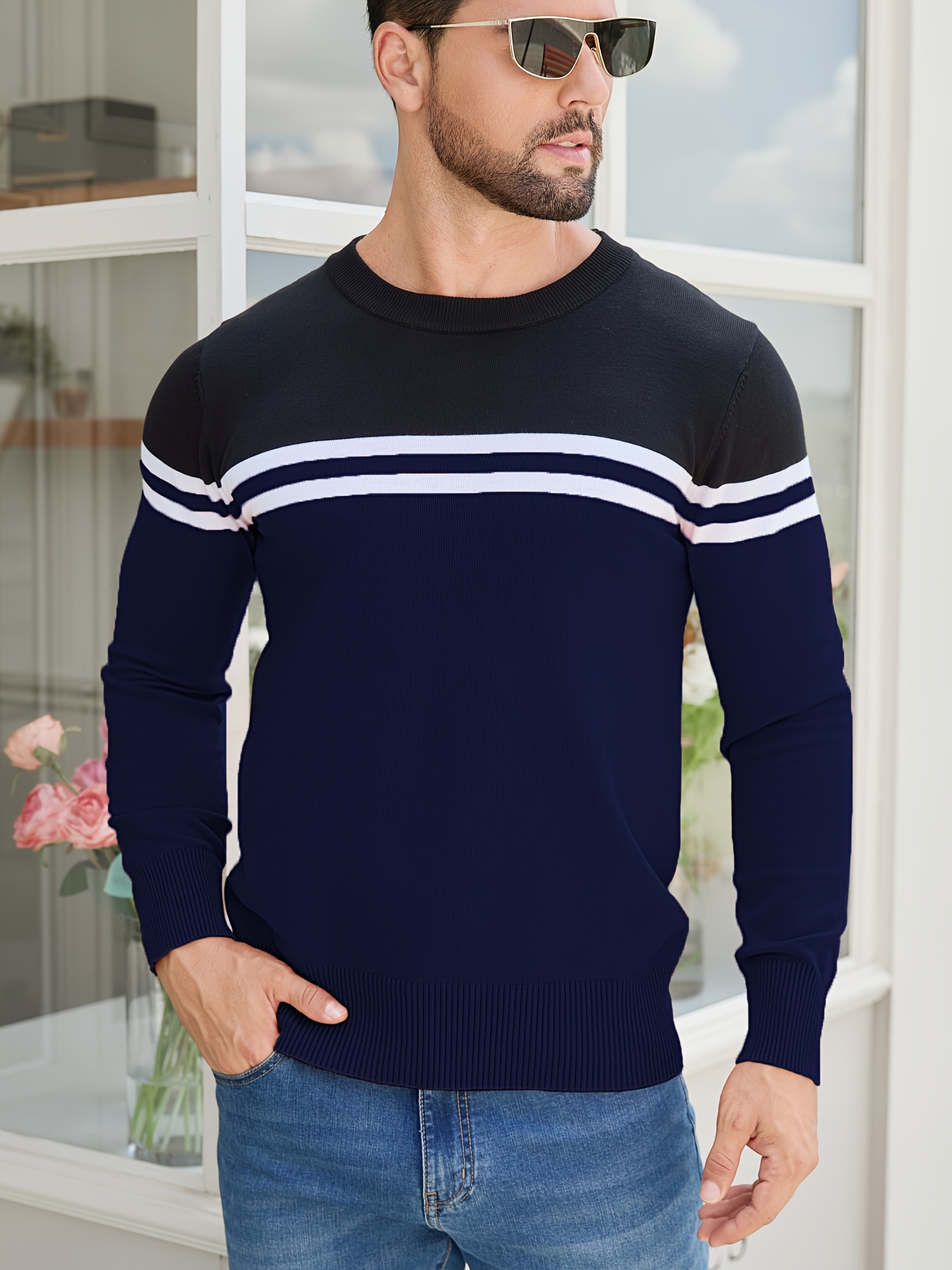 Men'S Thermal Long Sleeve Sweater - Winter Warmth Pullover with Striped Collar, H-Line Silhouette, Soft Stretchy Fabric for Office, Formal, Knit, Winter Sweater For Men, Winter Clothes For Men, Winter Clothes For Women, Winter Clothes For Women Plus
