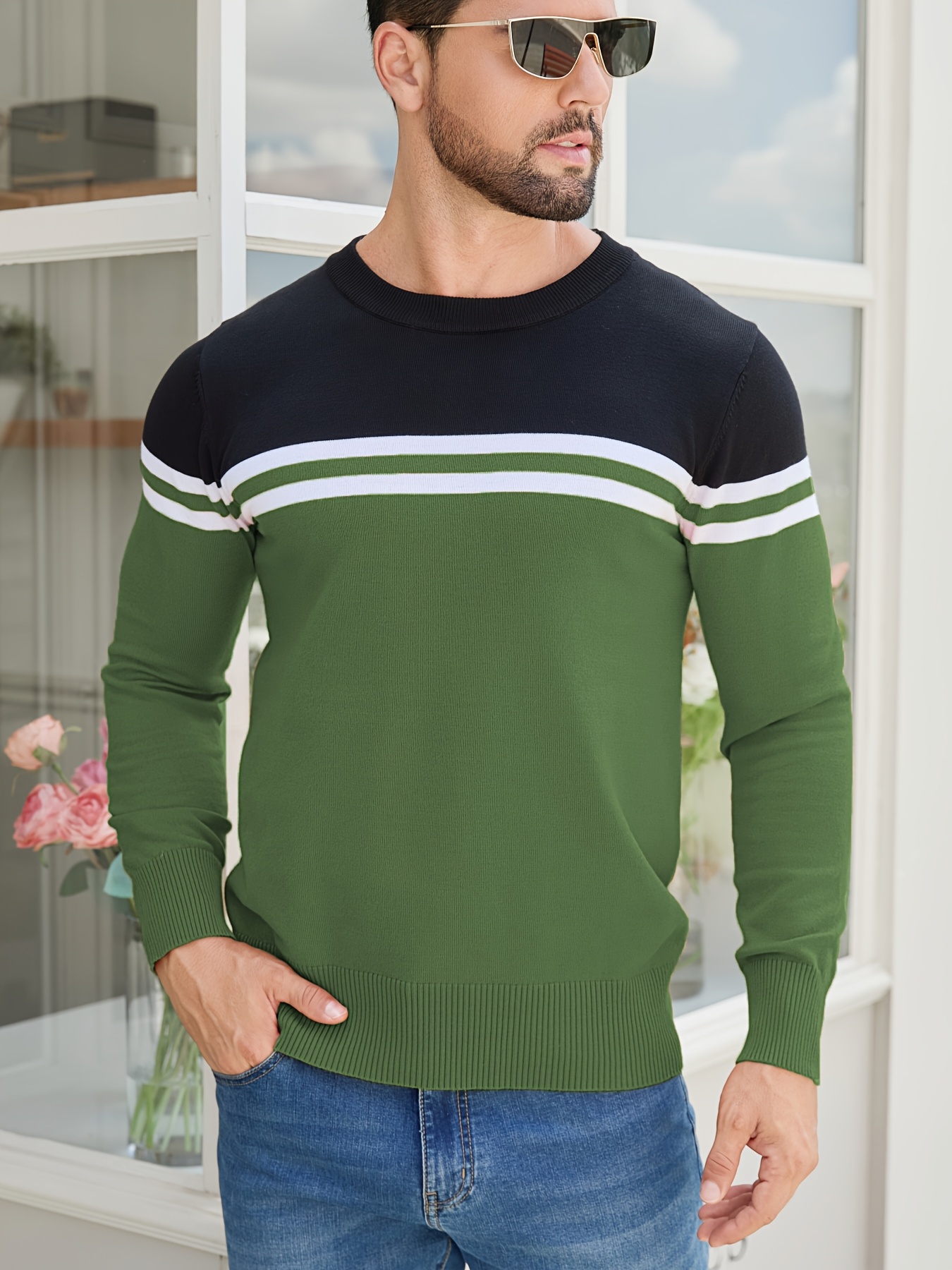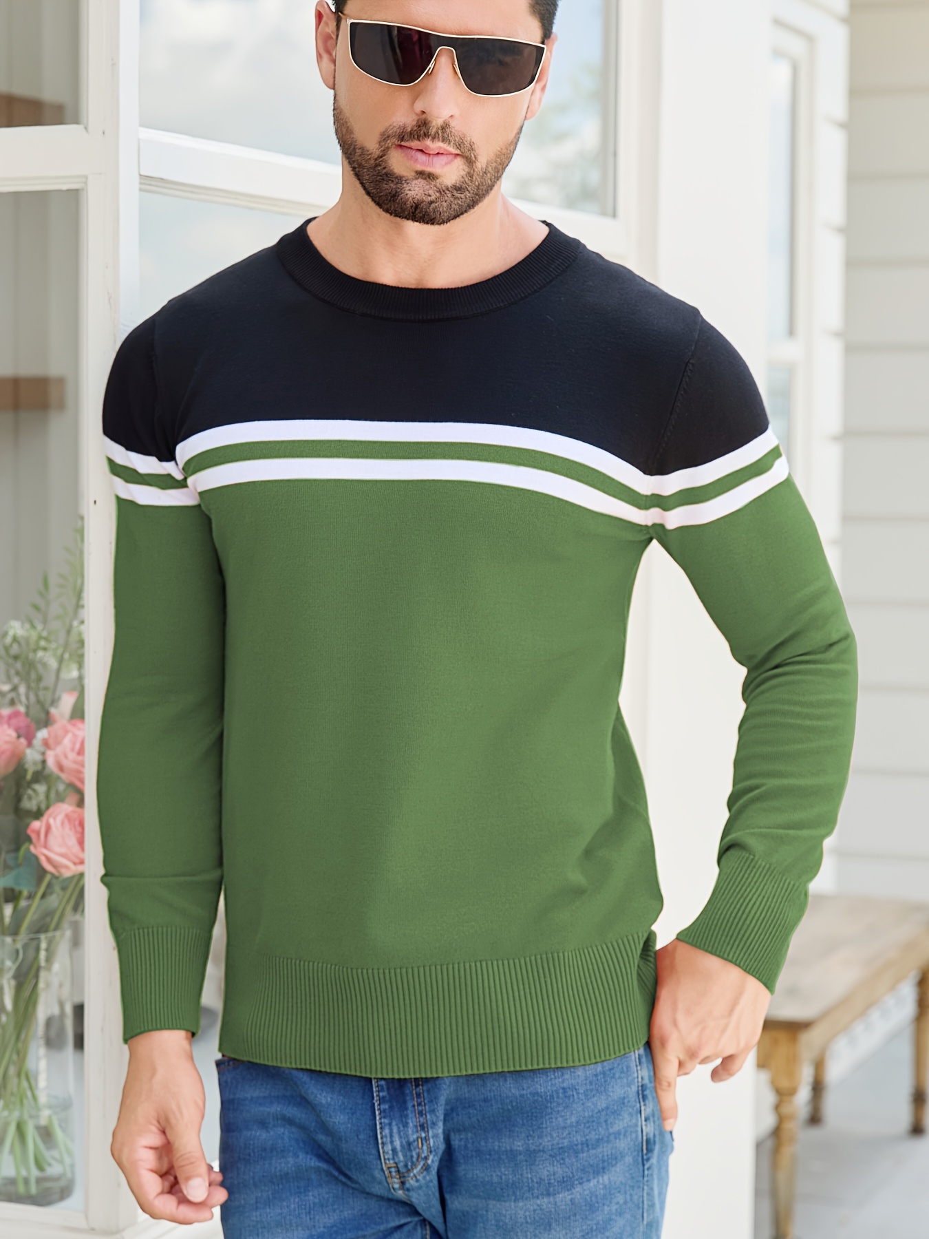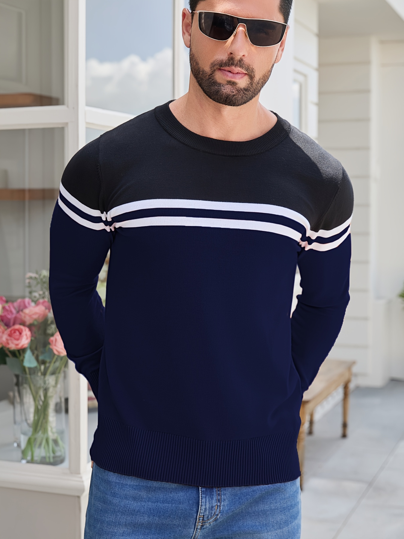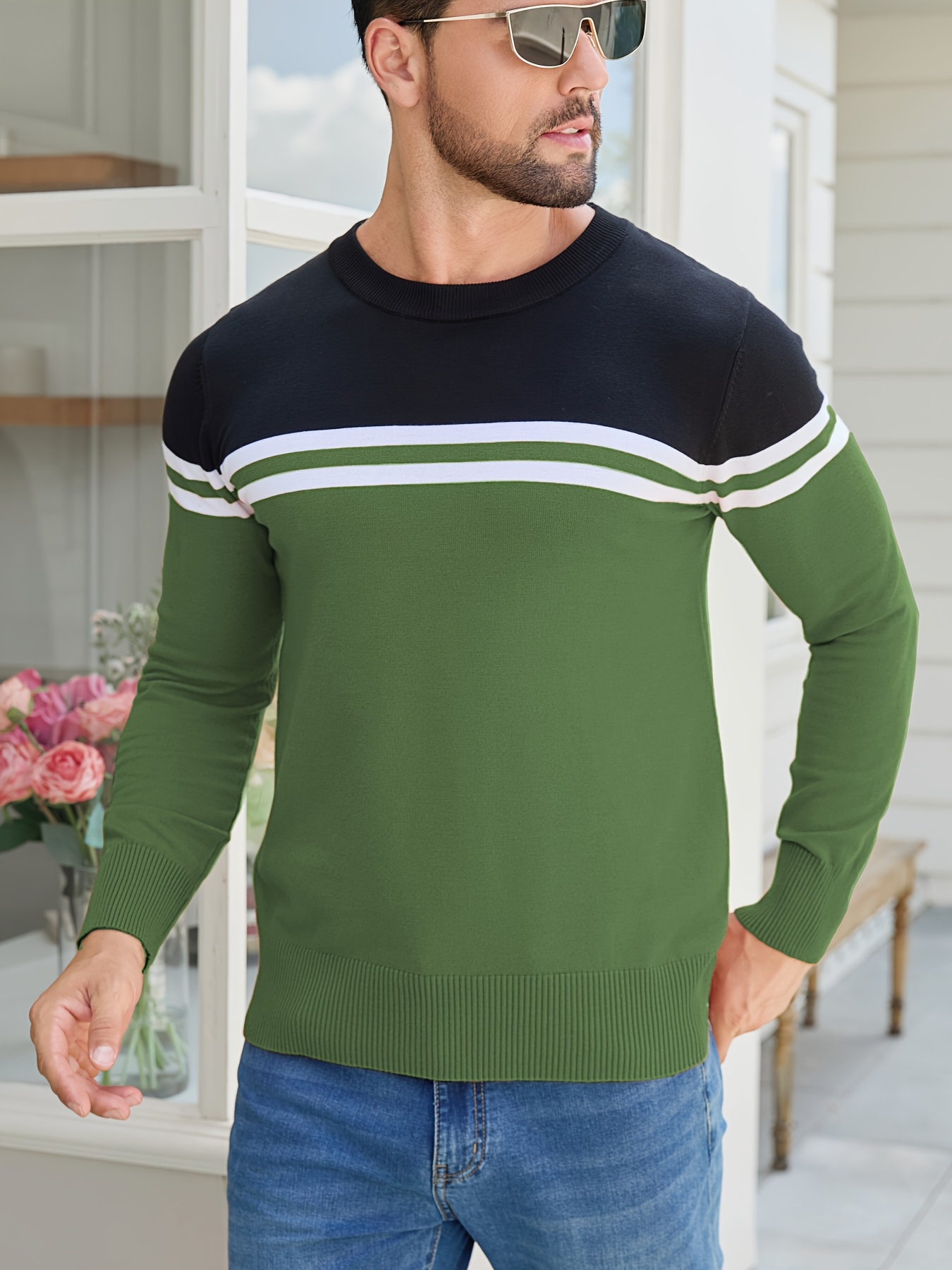Men'S Thermal Long Sleeve Sweater - Winter Warmth Pullover with Striped Collar, H-Line Silhouette, Soft Stretchy Fabric for Office, Formal, Knit, Winter Sweater For Men, Winter Clothes For Men, Winter Clothes For Women, Winter Clothes For Women Plus