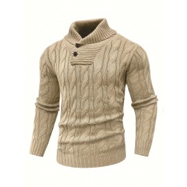 Men'S Lapel Pullover Cable Knit Long Sleeve Warm Sweater