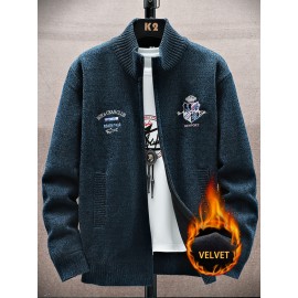 Men'S Winter Warm Jacquard Cardigan Sweater - Full-Zip Stand Collar Long Sleeve Coat with Full-Zip Front Closure, / Contrast, Casual to Formal Outerwear, Regular Fit for Fall & Winter, Versatile Everyday & Formal Wear, Durable Knit Construction
