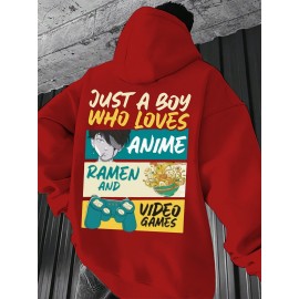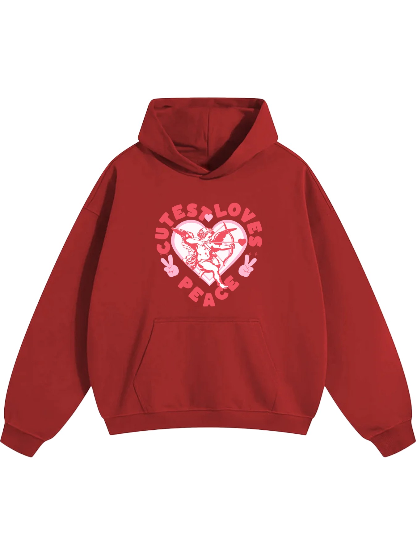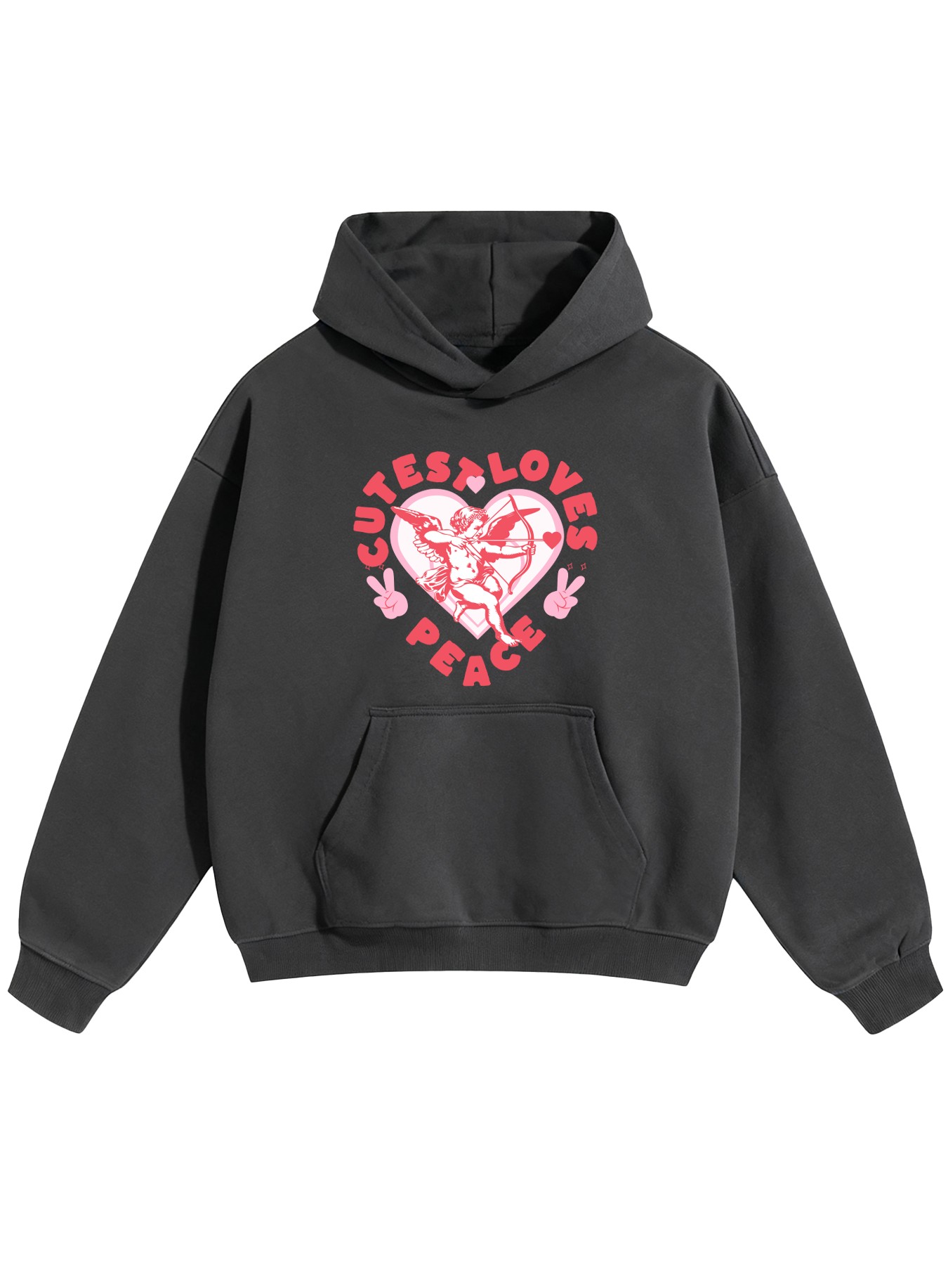 Men's Winter Warm Hooded Sweatshirt with "CUTES LOVES PEACE" Slogan, Cupid & Peace Sign Graphic, Casual Pullover Hoodie, Long Sleeve for Cold Weather, Machine Washable Cozy Top